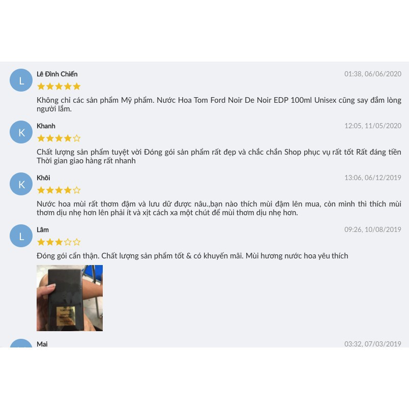 Sản phẩm Nước Hoa Tom Ford Noir De Noir Mã Mp43 nhận được 8 lượt đánh giá tích cực từ những người mua khác. Bấm vào nút Xem Đánh Giá để chuyển sang phần đánh giá của người dùng đã mua hàng.