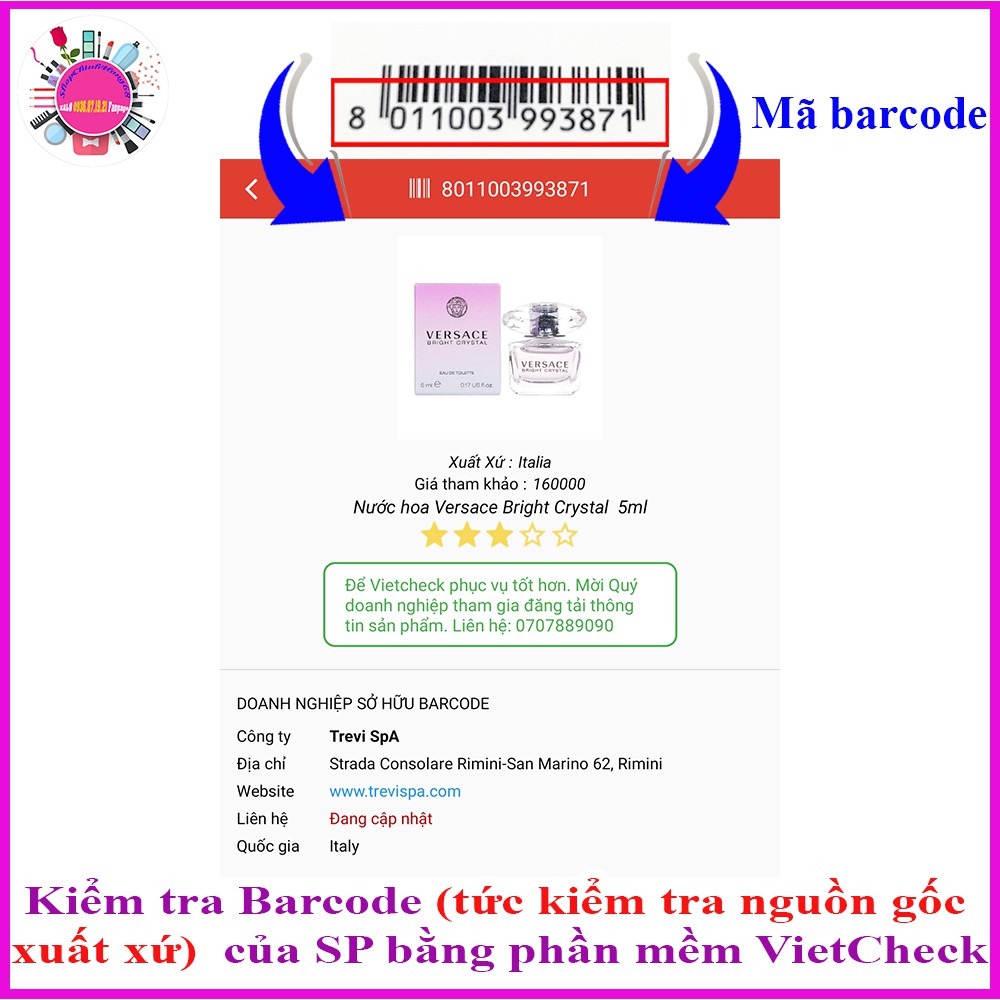 NƯỚC HOA MINI VERSACE NỮ 5ML USA MỸ THỂ TÍCH: 5ML MADE IN ITALY Nước hoa nữ BRIGHT CRYSTAL eau de toilette EDT 50ML Năm 2006, cho ra đời một loại nước hoa làm cả thế giới sửng sốt bởi mùi hương và thiết kế độc đáo, đó là Bright Crystal gợi tình, trong suốt và nổi bật. Lấy cảm hứng từ những sáng tạo độc đáo của người đi trước, Alberto Morillas đã vẻ nên một viên kim cương lấp lánh cho những buổi dạ tiệc lãng mạn để làm nên những câu chuyện tình đầy thăng hoa. Gợi tình, trong suốt và sáng bóng. Lấy cảm hứng từ sự kết hợp giữa các sản phẩm nước hoa độc đáo nhất của Donatella, nước hoa Bright Crystal ra đời mang trong mình hương thơm mát dịu của lựu, yuzu cùng mùi hương đầy lãng mạn và gợi tình của mẫu đơn, mộc lan, hoà quyện cùng hương thơm ấm áp của xạ hương và hổ phách. Nước hoa được thiết kế bởi Alberto Morillas vào năm 2006. Bright Crystal kết hợp với kiểu chai màu hồng cùng hương thơm mềm mại và sáng hơn Crystal Noir. Với thiết kế tương tự một viên pha lê thật càng lèm vẻ đẹp của nó được tăng lên nhiều lần. Bright Crystal mang trong mình hương thơm mát dịu của lựu, cam yuzu trộn lẫn với mùi hương đầy thu hút của mẫu đơn, mộc lan, hoà quyện cùng hương thơm ấm áp của xạ hương và hổ phách. Các tầng hương cứ quyện tròn, xoáy trào lên nhau và tạo nên những khúc ca thanh xuân tươi đẹp. Thông tin sản phẩm Nồng độ: Eau De Toilette (EDT) Loại nước hoa: nữ Mùi hương đặc trưng: Hương đầu: Cam Yuzu, lựu Hương giữa: Hoa sen, hoa mộc lan, hoa mẫu đơn Hương cuối: Xạ hương, cây dái ngựa, hổ phách Nhóm hương: Fruity, floral, woody Phong cách: Quyến rũ, nổi bật Dung tích: 50ml Cách sử dụng: Xịt Tên người sáng lập: Alberto Morillas Năm phát hành: 2006 ------------------- #NuocHoaMiniVersaceBrightCrystalItaly5ml #NuocHoaMiniVersaceBrightCrystalItaly #NuocHoaMiniVersaceBrightCrystal #NuocHoaMiniVersace #NuocHoaMini