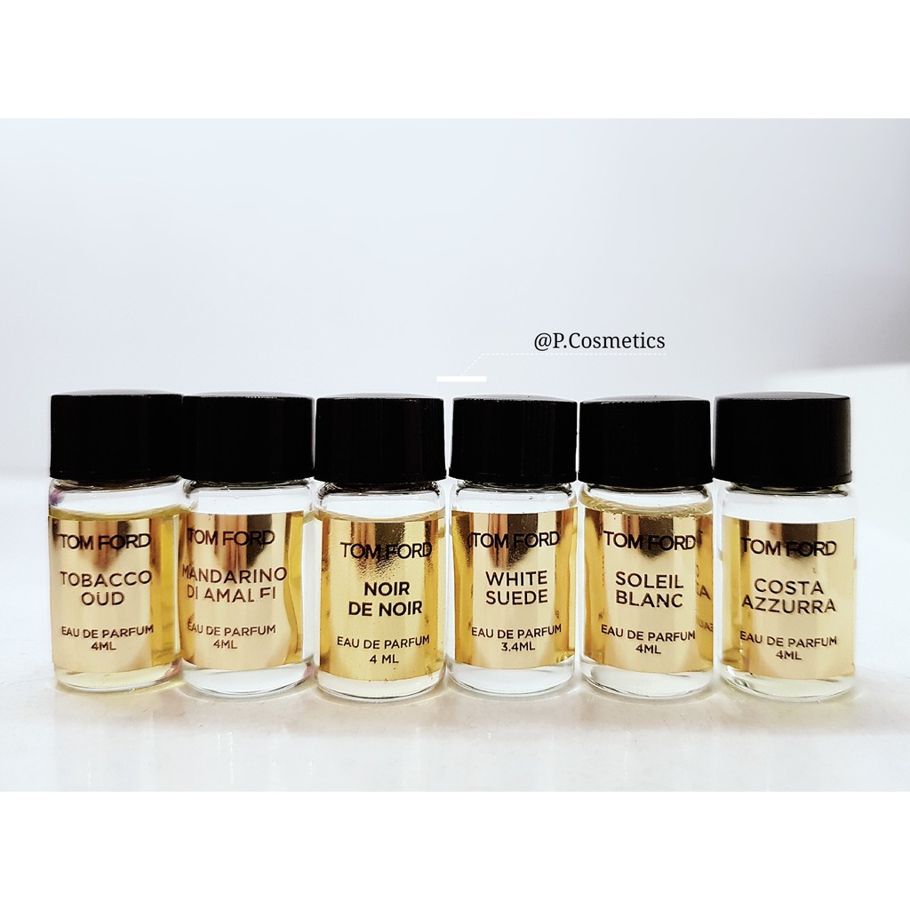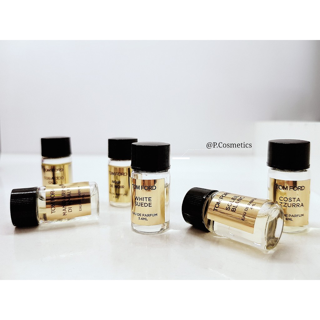 TOM FORD private blend collection 🖤Bộ sưu tập nước hoa mini Tom Ford🖤 💰💰💰Giá: #250k/1 lọ 🔵Độ tuổi khuyên dùng: 25 tuổi trở lên 📌Costa Azzurra (4mL) Nhóm hương: Hương Gỗ thơm - Woody Aromatic Phong cách: Sang trọng, thích hợp dùng ban ngày 📌Soleil Blanc (4mL) Nhóm hương: Oriental Floral (Hương Thơm Hoa Cỏ Phương Đông) Phong cách: Bay Bổng, Sang Trọng, Thanh Lịch 📌White Suede (3,4mL) Nhóm nước hoa: Hương hoa cỏ, Gỗ - Xạ hương Phong cách: Nữ tính , Sang trọng , Hiện đại 📌Noir De Noir (4mL) Nhóm nước hoa: Hương SÍP Phong cách: Tự tin , Quyến rũ , Sang trọng 📌MANDARINO DI AMALFI (4mL) Nhóm hương: Hương Cam chanh Thơm ngát - Citrus Aromatic Phong cách: Tươi tắn trẻ trung 📌Tobacco Oud (4mL) Nhóm hương: Hương Gỗ Cay Nồng - Woody Spicy Phong cách: Nam tính, mạnh mẽ, phong trần dù là dành cho unisex.