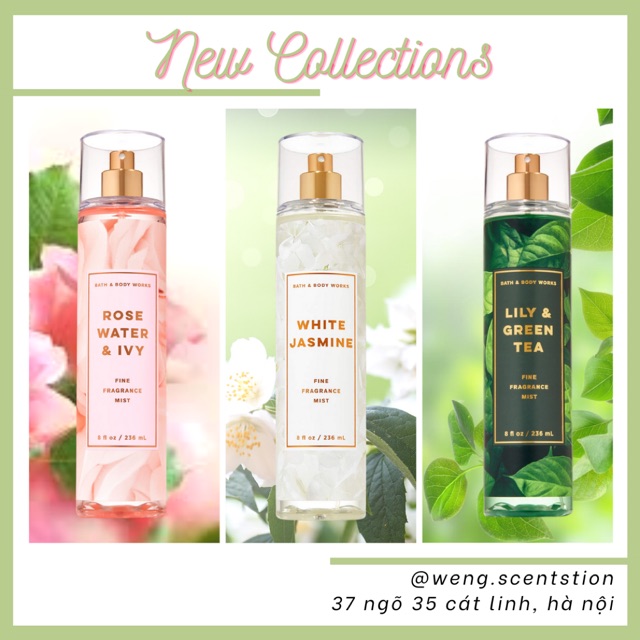Sản phẩm Xịt Thơm Toàn Thân Bbw: 𝑳𝒊𝒍𝒚 & 𝑮𝒓𝒆𝒆𝒏 𝑻𝒆𝒂/𝑾𝒉𝒊𝒕𝒆 𝑱𝒂𝒔𝒎𝒊𝒏𝒆/𝑹𝒐𝒔𝒆 𝑾𝒂𝒕𝒆𝒓 & 𝑰𝒗𝒚 hiện tại đang được bán online với giá tốt nhất trên thị trường với giá thấp nhất là 50.000đ và cao nhất là 240.000đ