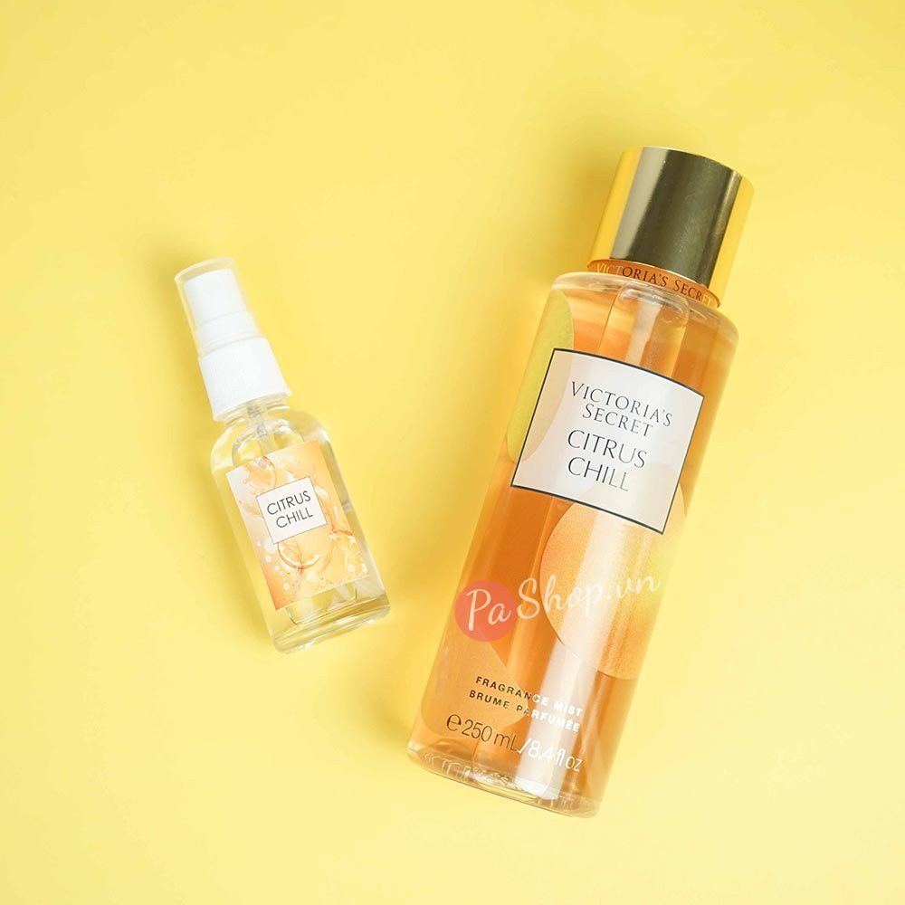 Xịt thơm toàn thân body mist Victoria Secret là thương hiệu body mist chất lượng và được yêu thích nhất hiện nay ❤️Body mist là sản phẩm 2 in 1 vừa là nước hoa vừa có tác dụng dưỡng thể. Nếu bạn không thích mùi nồng hắc quá mức của nước hoa thì đây là sản phẩm dành cho bạn. Body mist cực kì phù hợp với dân văn phòng hay những bạn học sinh, sinh viên còn đang đi học! ❤️Ban đầu, Pashop VN chỉ bán full size theo kích cỡ tiêu chuẩn của hãng. Tuy nhiên, nhận ra rằng rất nhiều bạn chưa thực sự biết được mùi hương của các loại body mist cũng như nhiều bạn không thể trải nghiệm được sự tuyệt với của body mist nếu như mức giá quá cao. Chính vì vậy, bọn mình đã quyết định chiết sang chai nhỏ (36ml) bằng các dụng cụ chiết nước hoa chuyên dụng để đảm bảo việc giữ lại mùi hương trọn vẹn ❤️Bọn mình cũng đảm bảo các chai nhỏ cũng là sản phẩm chính hãng được chiết ra từ những chai lớn không có sự pha trộn thêm. Nếu như các bạn phát hiện những điều Pashop cam kết không đúng sự thật, bọn mình sẵn sàng đền bù 100 lần thậm chí là 1000 lần luôn cơ!!! Dưới đây là những mùi hương của các loại body mist mà Pashop VN đang bán các bạn có thể tham khảo nha.^^ 🍀Citrus Chill: Mở đầu bằng vị ngọt thanh của cam chanh. Sau khi nốt cam chanh bay đi, chúng mình sẽ cảm nhận được vị ngọt béo ngậy của hương hạnh nhân. Mùi thơm vừa dịu vừa sang chắc chắn sẽ khiến bạn không ngừng hít hà đâu ạ!