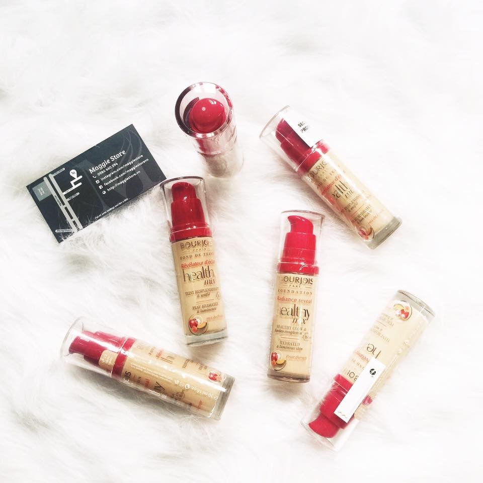 Kem nền BOURJOIS HEALTHY MIX FOUNDATION Giá: #300k / lọ 30ml . Có 2 tone: 51 (sáng), 52 (trung bình sáng) . Trích review: "Đầu tiên là chất kem trên tay này, tớ cảm nhận được kem khá lỏng, cảm giác như chứa rất nhiều nước vậy. Rất dễ blend mà lại mang lại cảm giác rất mát trên da nữa. Healthy Mix- chính cái tên đã mang lại cảm giác an toàn cho chúng ta. Dù là kem nền trang điểm nhưng nó lại chứa những vitamin từ trái cây, giúp da sáng dần lên trong quá trình sử dụng sản phẩm. Blend ra trên tay, các gái thấy sáng hơn hẳn đúng không. Lỗ chân lông cũng đã bị kem che đi rất nhiều, Do da mặt sáng hơn da tay nên lên mặt nó tệp hẳn với màu da của tớ luôn, nhìn rất tự nhiên. Do tệp hẳn với màu da nên không có sự khác biệt về độ sáng lắm, nhưng mụn và thâm đã được che được rất nhiều nữa. thêm một tý kem che khuyết điểm vào là hoàn hảo luôn he he. Và quầng thâm cũng được che kha khá. Nên nếu chỉ dùng hàng ngày thì một mình em này, thêm tí phấn phủ là ok he he Độ lastlong 16 tiếng thì ẻm không được như thế tuy nhiên đến tiếng thứ 8 thì mụn và vết thâm mới hơi bị lộ ra thui. Như vậy là tầm 9-10 tiếng đó, như vậy là quá ổn luôn òi." . #maggiekemnen #bourjoishealthymix