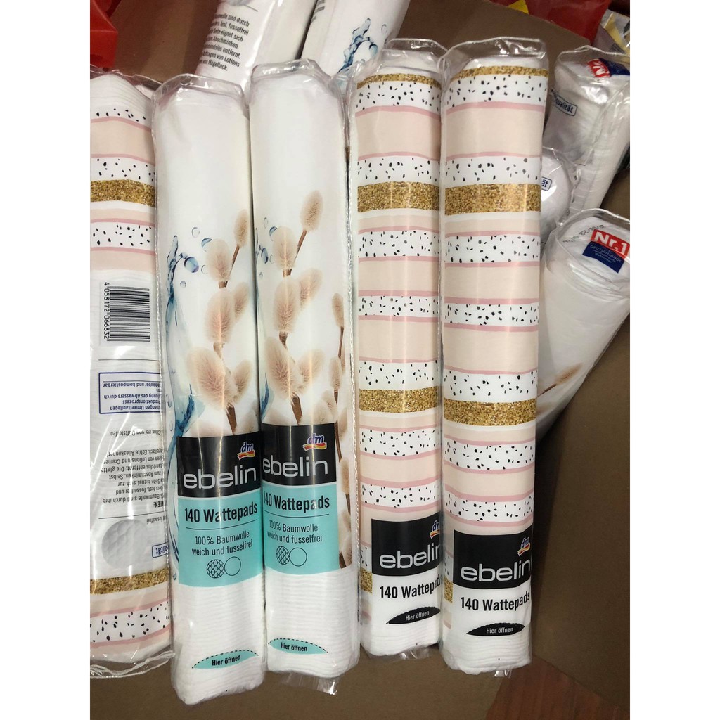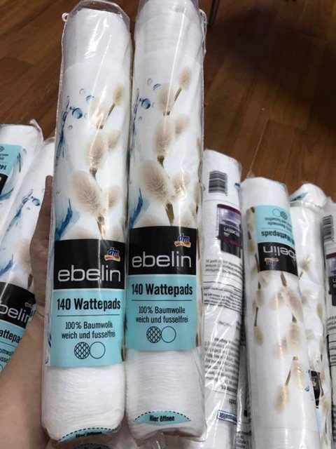 Bông tẩy trang Ebelin- mềm, dai như 1 miếng vải. Rất nhiều công dụng hữu ích mang đến cho bạn từ gói bông kỳ diệu này. Tuần mấy chuyến hàng nhưng vẫn không đủ để giao khách. -> Bạn có thể dùng để rửa mặt hàng ngày thay cho khăn rửa mặt -> Bạn có thể dùng để tẩy trang đồ make up trên mặt -> Dùng để thoa nước hoa hồng Gói 140 miếng dùng tẹt ga Xuất xứ : Đức. Giá : 80k