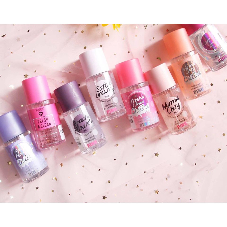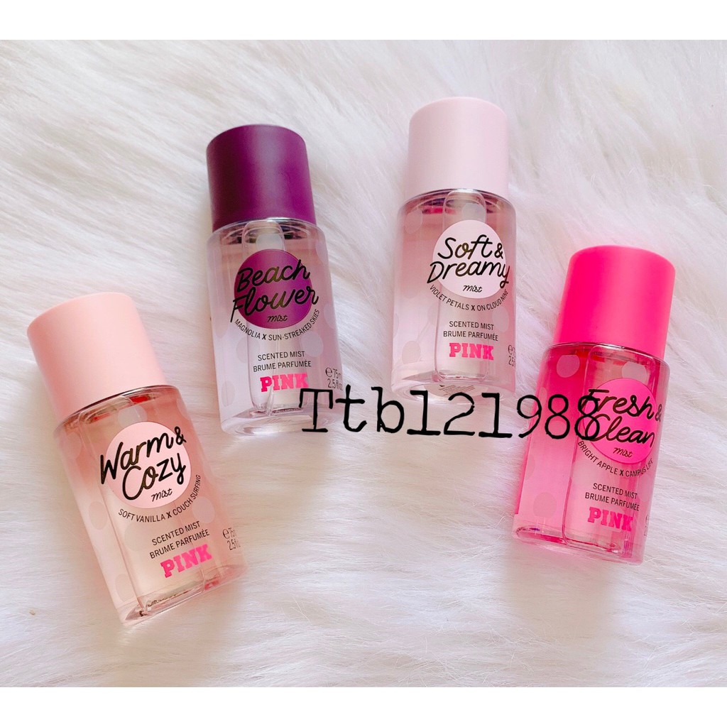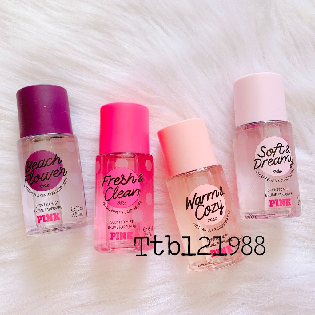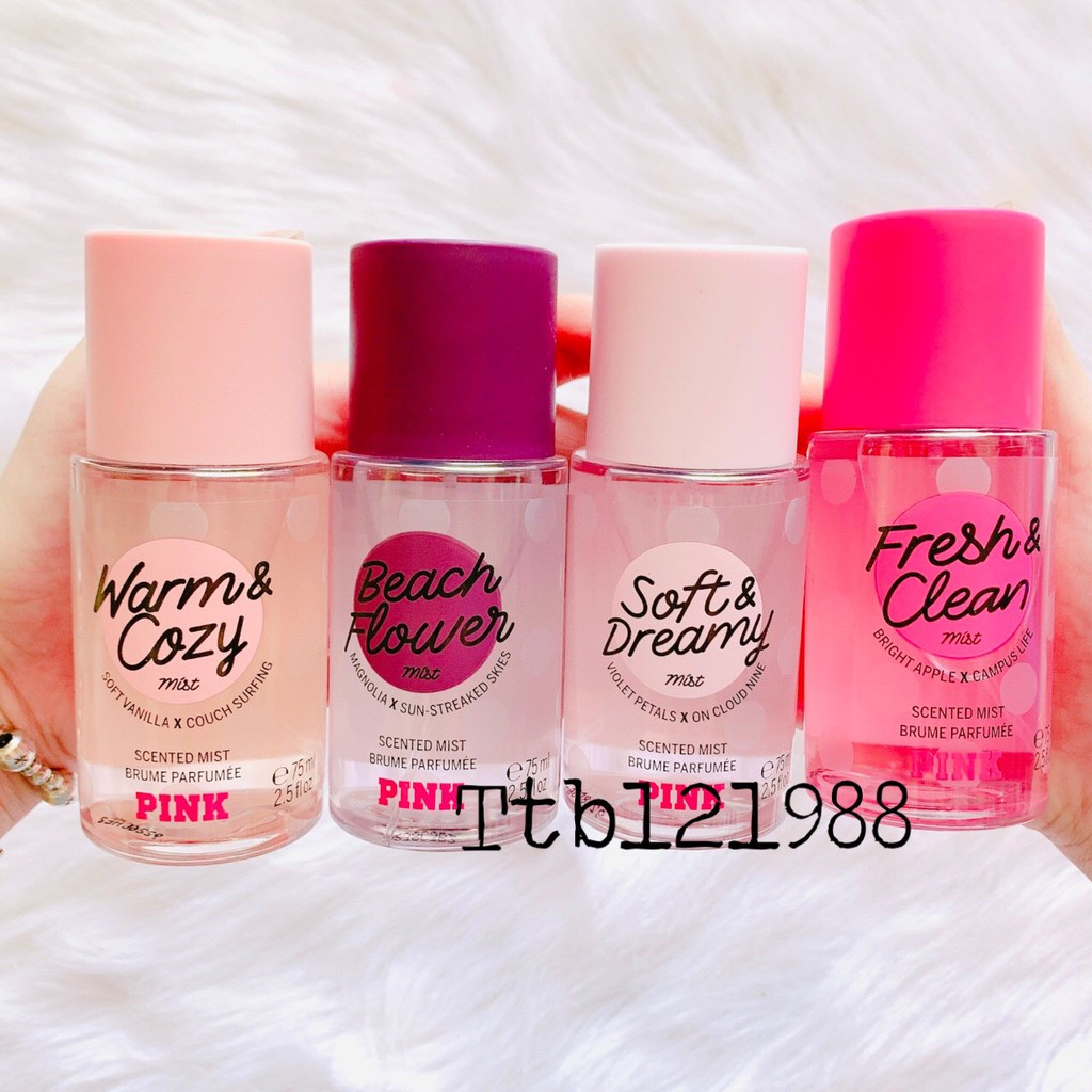 #Xịt_Thơm_Toàn_Thân #Victoria's_Secret_Body_Mist_Pink với những tính năng vượt trội: - Hương_thơm_tươi_mát, #nồng_nàn từ các loại hoa quả thiên nhiên mang đến cảm giác dễ chịu, tinh tế khi sử dụng. - Hương thơm nồng nàn, gợi cảm giúp bạn quyến rũ và nổi bật hơn mỗi khi xuất hiện ở đám đông. - Kiểm soát mùi cơ thể một cách hiệu quả. - Công thức #lưu_hương_lâu, giúp cơ thể thơm ngát suốt ngày dài. - Thành phần tự nhiên, an toàn với mọi loại da. - Thiết kế chai nhỏ tiện lợi, dễ dàng sử dụng và mang theo bên mình đi đến bất cứ đâu. - Các thành phần chiết xuất từ thiên nhiên, an toàn với mọi loại da, kể cả những làn da nhạy cảm nhất. - Nhiều lựa chọn về mùi hương để bạn lựa chọn theo sở thích và phong cách của mình. - Thương hiệu mỹ phẩm nổi tiếng thế giới Victoria's Secret - Cho đến giờ, chưa có một thương hiệu nào thành công được như Victoria's Secret trong việc đưa vẻ đẹp gợi cảm thành một biểu tượng. Những đêm trình diễn “#hấp_dẫn_nhất_hành_tinh”, những “#thiên_thần_của_Victorias_Secret” với những cặp chân dài quyến rũ nhất thế giới, những bộ đồ lót đắt giá nhất được trình diễn với những người mẫu nóng bỏng nhất… tất cả đã làm nên đặc trưng của Victoria's Secret.... Mùi hương của nước hoa Victoria's Secret cũng đầy #gợi_cảm như các thiên thần của họ trên sản catwalk. - Bạn có rất nhiều sự lựa chọn cho thương hiệu nước hoa này #Hướng_dẫn_sử_dụng - Lắc đều, hướng vòi xịt thơm toàn thân vào vị trí cần xịt, cách cơ thể khoảng 15 – 20 cm. - Xịt ở những vùng cơ thể tập trung nhiều mạch máu, da ẩm và nhạy cảm như cổ tay, sau gáy, giữa ngực, để hương thơm có thể khuếch tán đồng thời cũng giữ mùi được lâu hơn. - Hạn chế xịt trực tiếp lên quần áo và đồ trang sức.