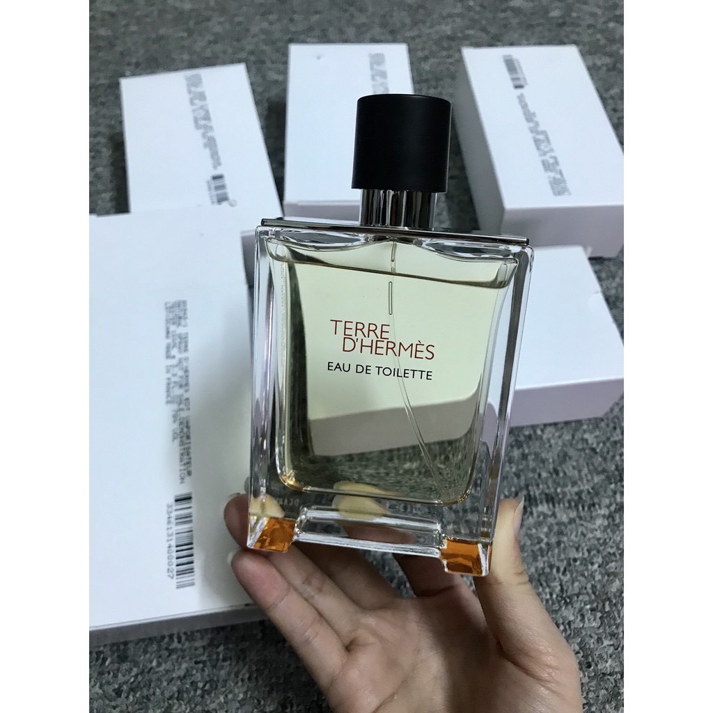 Nhãn hiệu:Hermes Giới tính:Nam Nồng độ:Eau de Toilette Phát hành:2006 Nhà pha chế:Jean-Claude Ellena Xuất xứ:Pháp Dung tích: 100ml Nhóm hương:Hương Gỗ Cay Nồng – Woody Spicy Phong cách:Nam tính, chững chạc, phong trần Mùi hương đặc trưng: Hương đầu: Cam, Bưởi. Hương giữa: Hạt tiêu, Hoa thiên trúc quỳ. Hương cuối: Hoắc hương, Tuyết tùng, Cỏ Vetiver, Nhựa thơm. Terre d’Hermès eau De Toilette được hình thành từ hương thơm đặc sắc tinh túy của đất trời, cỏ cây, hoa lá. Một mùi hương ngũ vị: có sự góp mặt đầy đủ từ các loại gia vị cay nồng, trái cây tươi chín mọng, hương hoa sắc nét quyến rũ, vị thanh mát từ cỏ cây. Tất cả đều được gói gọn và bao trùm bởi tuyết tùng, và thật bất ngờ: vị ngọt từ nhựa thơm (giống như kẹo cao su) là chất xúc tác đưa đến những cảm giác mãnh liệt nhất khiến cho tất cả các giác quan cùng bùng nổ! Cảm ơn quý khách!.