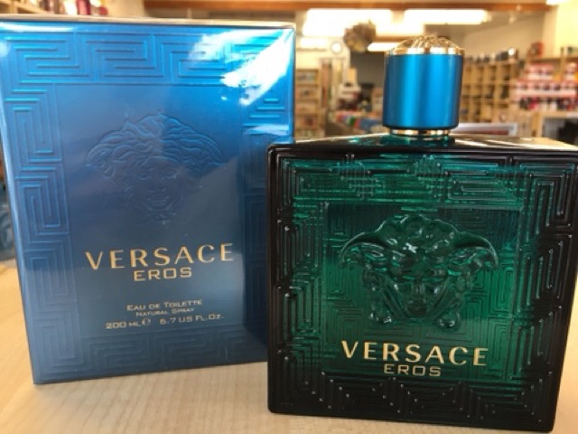 Versace đã tung ra một loại nước hoa mới dành cho nam giới mang tên là Eros, được lấy cảm hứng và kết nối sâu sắc với thần thoại Hy Lạp. Mục đích của dòng nước hoa này là khơi gợi và thể hiện sự mạnh mẽ và đam mê. Nước hoa được đặt theo tên của vị thần tình yêu và cũng là con của vị thần Aphrodite là Eros. Eros được sáng tạo bởi Aurelen Guichard. Eros thể hiện sự mạnh mẽ nam tính thông qua sự kết hợp tinh tế của hương lá bạc hà tươi, vỏ chanh và táo xanh. Hương giữa gây nghiện bởi sự pha trộn của một số thành phần hương hoa phương Đông hấp dẫn như đậu tonka, hổ phách, hoa phong lữ , vani cùng với một chút thành phần hương đặc trưng của hương gỗ như gỗ tuyết tùng từ Atlas và Virginia. Trong khi ở lớp hương cuối hương hoa cỏ lau và rêu sồi làm tăng thêm sự quyến rũ, tinh tế và đam mê cho phái mạnh. Với thiết kế màu xanh ngọc đầy ấn tượng, chai nước hoa mang đến sự tươi mát và gợi cảm. Hình dáng của chai nước hoa như một mê cung, như muốn nhấn mạnh lên sự bí ấn của nó. Versace Eros là mùi thơm dành cho người đàn ông mạnh mẽ, là người làm chủ được bản thân và luôn đứng ra đấu tranh bảo vệ ý tượng và mục đích của mình
