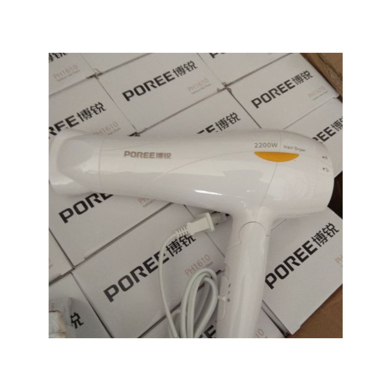 - Máy sấy tóc PH1610 là dòng máy chuyên dụng được các salon tóc cao cấp tin dùng do máy có công suất lớn, đáp ứng được nhu cầu tạo kiểu cũng như làm khô tóc mà vẫn đảm bảo độ bóng mượt của tóc sau khi ủ dưỡng. - Máy có công suất lớn 2000W, và được tích hợp một loạt chức năng cao cấp , đáp ứng hoàn hảo cho các salon tạo mẫu tóc chuyên nghiệp. - Sự kết hợp của công suất và tốc độ giúp cho việc sấy và tạo kiểu tóc nhanh hơn và dễ dàng hơn. - Điều tiết ion cho mái tóc bóng mượt, không bị xoăn rối. Chăm sóc mái tóc của bạn với tính năng điều tiết ion. - Những ion âm loại bỏ hiện tượng tĩnh điện, chăm sóc tóc và ép phẳng các biểu bì tóc để làm tăng vẻ bóng mượt của tóc. - Sấy mát để cố định kiểu tóc của bạn. Là tính năng cần có đối với người tạo kiểu tóc chuyên nghiệp, cung cấp luồng khí lạnh rất mạnh. Tính năng này được sử dụng sau khi tạo kiểu để hoàn thiện và cố định kiểu tóc. - Tuy là dòng máy chuyên dụng nhưng rất dễ sử dụng nên các anh em có thể mua về để sử dụng trong gia đình rất hiệu quả. - Tên thiết bị: Máy sấy tóc PH1610 - Model: PH1610 - Thương hiệu: Poree PH1610 - Công suất: 2000w - Tình trạng: đóng hộp, hàng mới, chính hãng 100% - Kích thước : 26*25*7 cm