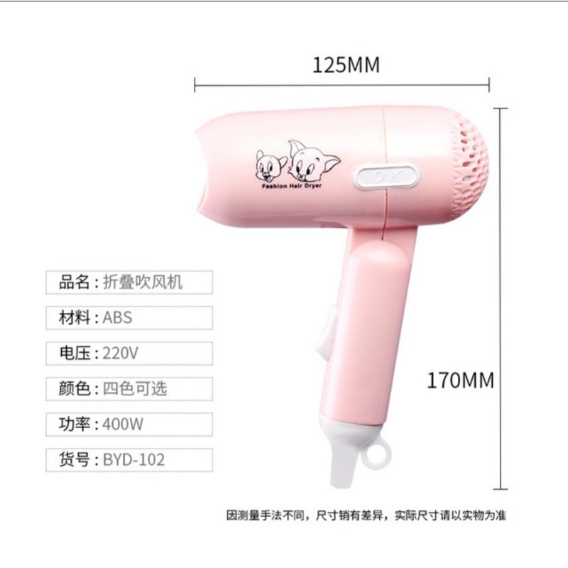 🌈🌻 Máy sấy tóc mini cao cấp Kích Thước : 11 x 7,5 x 16 cm Màu Sắc: hồng. xanh Trọng Lượng : 215g Công suất: 500/800W Nguồn điện: 220V ,🥑 Đặc điểm nổi bật -Máy sấy tóc mini cầm tay thích hợp sử dụng để sấy khô và tạo kiểu tóc, nhưng giữ được độ bóng khỏe cho mái tóc của bạn. -Chiếc máy sấy tóc này tiện dụng với tay cầm có thể gập lại nên vô cùng nhỏ gọn có thể dễ dàng xếp vào những nơi nhỏ nhất và bạn có thể mang đi hầu như tất cả mọi nơi. -Có thể dễ dàng điều chỉnh tốc độ và độ nóng 077867269