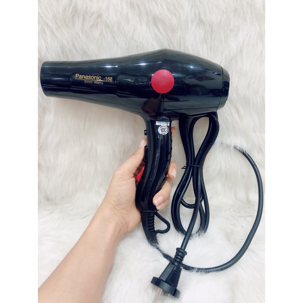 Loại Máy Sấy công nghiệp loại khỏe,gió mạnh,công suất lớn Chức năng sấy hàng,xì màng co,độ nóng cao,gió mạnh, Điện áp 220v Công suất (W) 2000W Bảo hành 1 tháng Máy sấy tóc PANASONIC-168 được thiết kế gồm 2 tốc độ gió kết hợp cùng chức năng giữ nhiệt ổn định để mang đến cho mái tóc sự chăm sóc nhẹ nhàng và hiệu quả nhất. Ngoài ra, máy còn được thiết kế với tay cầm có thể gấp gọn, tạo sự thoải mái và tiện lợi khi sử dụng, cất giữ cũng như mang theo khi cần. ĐẶC ĐIỂM NỔI BẬT Máy sấy tóc PANASONIC-168 -Là dòng máy sấy có công suất lớn thích hợp cho nhà hàng,gia đình,và sấy hàng,xì màng co… Độ nóng cao và gió thổi mạnh nên việc sấy tóc và sấy hàng rất nhanh và hiệu quả tiết kiệm được rất nhiều thời gian cho người sử dụng. - Có 2 tốc độ gió, tạo sự linh động khi sử dụng. -có 3 chế độ nóng nhiều,nóng ít,và không nóng để người sử dụng lựa chọn chế độ khi sấy tóc hay khi cần sấy hàng.v.v. - Chức năng giữ nhiệt ổn định giúp bảo vệ tóc không bị hư tổn. - Công suất tối đa 2000W. - Tay cầm chắc chắn tiện lợi khi sử dụng, phím bấm rất tiện lợi.