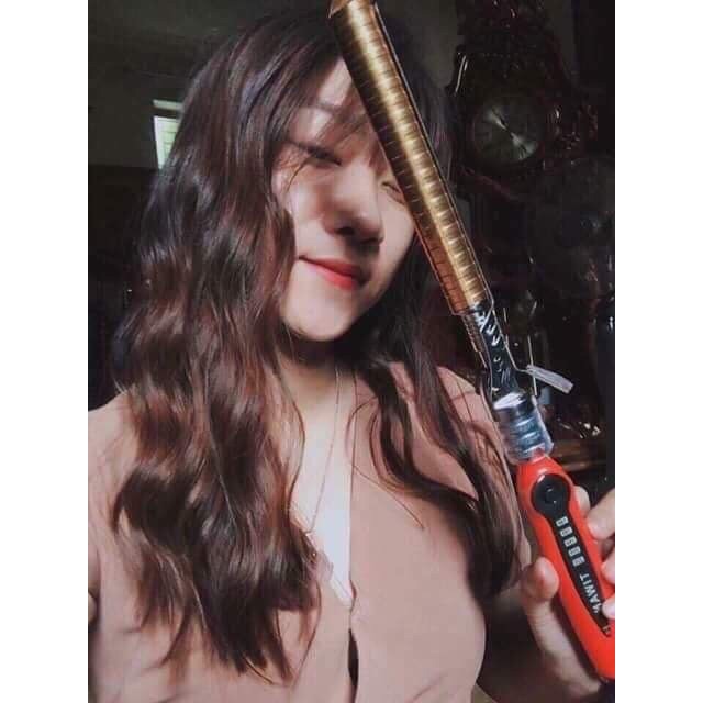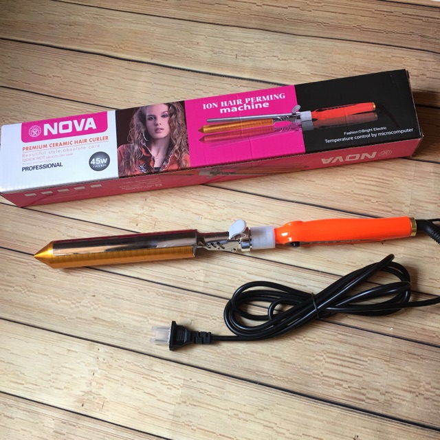 Máy uốn tóc Nova lõi sứ có trục uốn được phủ gốm sứ cao cấp giúp máy nóng cực nhanh, bề mặt gốm không chỉ giúp bạn uốn xoăn mà còn có ưu điểm chống hư tổn hoặc làm xơ, chẻ ngọn tóc. Tay cầm bằng nhựa có ghi các mức nhiệt, phần kẹp tóc xoay 360 độ giúp bạn thao tác dễ dàng hơn. Máy có 4 nấc nhiệt độ: 160-180-200-220 độ để bạn lựa chọn cho phù hợp với chất tóc của bạn. Chiều dài lô uốn dài 18 cm cho bạn thoải mái uốn xoăn cả mái tóc dài. Sản phẩm có tông màu vàng đồng trẻ trung phù hợp với bạn gái. Đây sẽ là “trợ thủ đắc lực” cho bạn trong những dịp đi tiệc, dạo phố hoặc muốn thay đổi kiểu tóc mỗi sáng đến công sở. Với kích thước nhỏ, gọn, nhẹ…máy uốn tóc có thể trở thành người bạn, luôn có mặt trong túi xách để cùng bạn “đi du lịch” hay đến bất kì nơi đâu. Các bước thực hiện: – Bước 1: Trước tiên gội đầu sạch, sau đó sấy cho tóc khô vừa. – Bước 2: Bạn chia phần tóc ở phía sau đỉnh đầu và cố định bằng kẹp. Nếu tóc nhiều thì nhớ chọn loạI kẹp to để giữ cho tóc không bị bung ra. – Bước 4: Chia đều mỗi phần tóc của mỗi bên tóc làm 2, uốn thêm lần nữa giống thao tác ở bước 3. Nhẹ nhàng lấy máy uốn ra khỏi tóc. – Bước 5: Tiếp tục uốn phần tóc ở đỉnh đầu theo hướng cuộn ngược trở lại. Chú ý cầm chắc máy uốn, điều phối tay linh hoạt và di chuyển máy một cách nhẹ nhàng. – Kết thúc, xịt keo làm bóng, mượt tóc. QUY CÁCH SẢN PHẨM MÁY LÀM TÓC LÕI SỨ NOVA: – Màu sắc: Cam, nâu, trắng… – Uốn sóng xoăn, uốn lọn – Kích thước: Chiều dài toàn máy kẹp tóc 37cm, bảng dài 15 cm, rộng 2,8 cm. – Trọng lượng: 490gr. – Nguồn điện: 220V – 50Hz – Nhiệt độ: 140 – 220 Độ C. – Công suất: 40W – 80W. – Đường kính ống: 19mm- 28mm-31mm