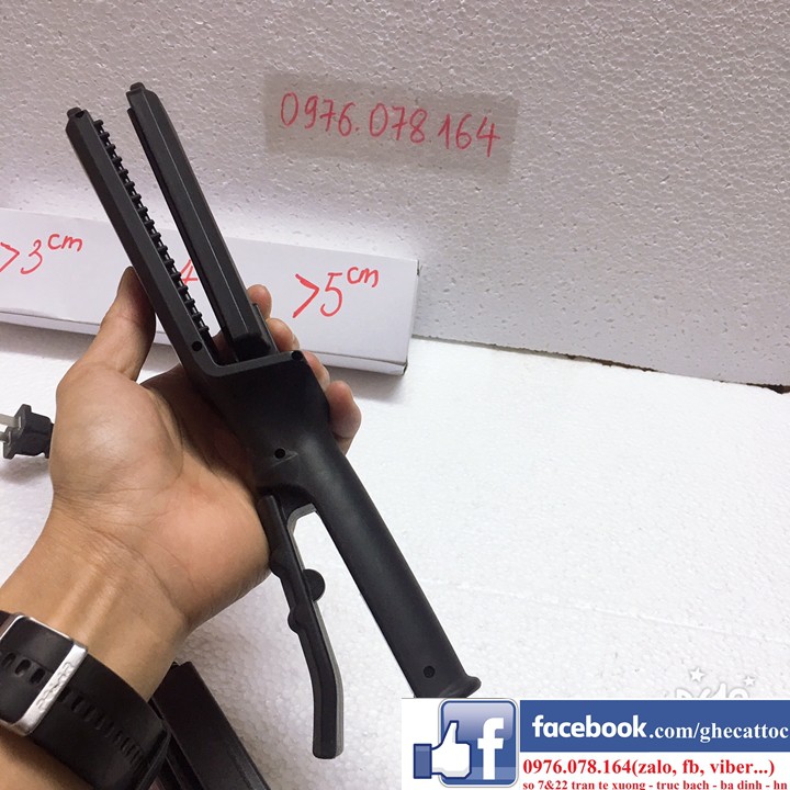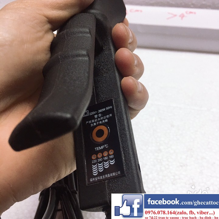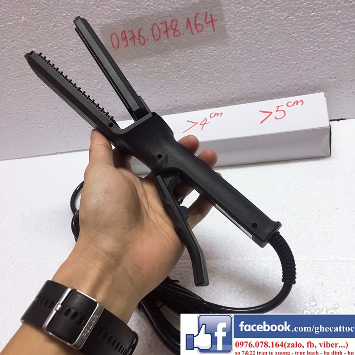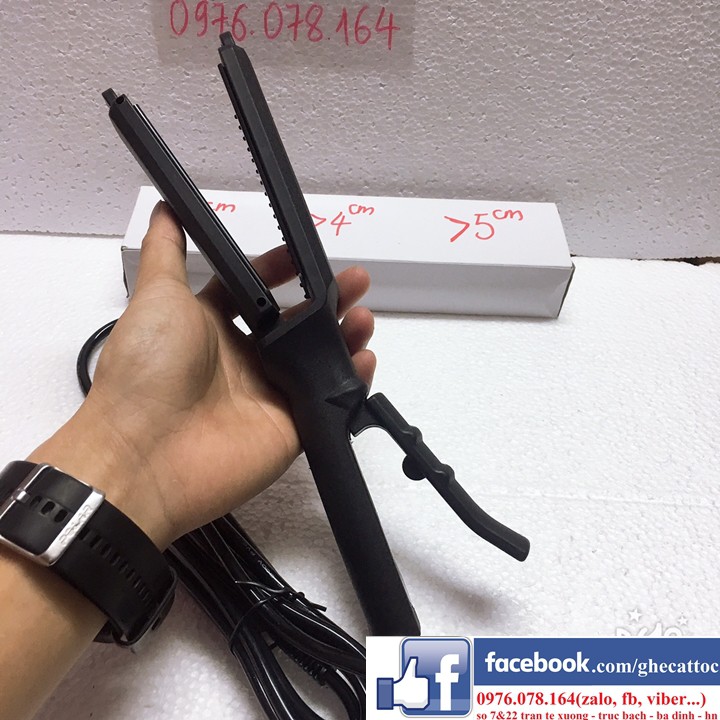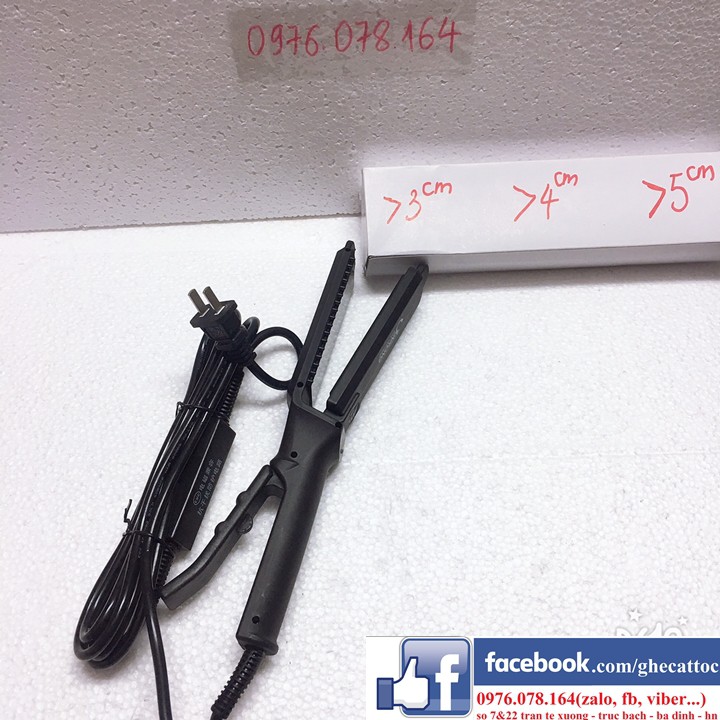 Trên hình là máy là tóc duỗi tóc kẹp tóc Ionic flatter dạng tay cầm kìm - sở dỉ gọi là dạng kìm vì tay cầm thao tác giống kim (kềm) sử dụng dễ dàng Dải nhiệt độ 160 - 180 - 200 - 220 độ C Công suất: 260W Đây là bản máy là 3cm trong dòng máy là IONIC FLATTER 3CM 4CM 5CM chính là độ rộng làm việc của máy, độ rộng chính xác thực tê khoảng 3.3 cm - 4.3 cm và 5.3 cmKiểu máy là này rất được các thợ làm tóc sử dụng tại các salon trên toàn quốc vì nhiều hữu ích, dễ cầm nắm thao tác, nhiệt độ đều và ổn định, chính lớp phủ Ionic làm cho tóc siêu mềm mượt sau khi là Máy được làm nóng nhanh trong vòng chưa đến 30 giây Cách sử dụng: - Cắm kẹp vào ổ cắm điện 220 V - Nhấn nút "Bật" để khởi động máy duỗi tóc - Sau khoảng 30 giây, có thể sử dụng phích cắm Lưu ý: sau mỗi lần sử dụng phải ấn nút tắt máy trước khi rút dây cắm