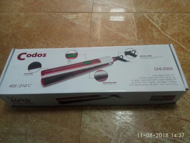 Là phát minh mới trong ngành thời trang và làm đẹp tóc, máy kẹp tóc Codos CHI-2300 được ra đời bởi sự kết hợp thành công giữa các chuyên gia tóc chuyên nghiệp và thương hiệu Codos nổi tiếng. Máy kẹp tóc Codos CHI-2300 Máy kẹp tóc Codos CHI-2300 là dòng sản phẩm mới của thương hiệu Codos. Chúng ta hãy cùng tìm hiểu xem máy kẹp tóc Codos CHI-2300 có gì đặc biệt nhé! Máy phát ion âm ổn định trong bảng điều khiển, đặc biệt hơn kẹp tóc Codos có thêm màn hình LCD kiểm soát nhiệt độ phù hợp giúp bạn làm tóc dễ dàng. Thiết kế tiện dụng, thao tác dễ dàng: Thời gian nhiệt độ tối đa chỉ trong 45 giây Nút điều chỉnh nhiệt độ tùy thích Màn hình LCD hiển thị nhiệt độ tự động Dây xoay 3600 Máy có kích thước nhỏ gọn để bạn có thể dễ dàng mang theo và làm đẹp trong các chuyến du lịch cũng như công tác xa nhà. Màn hình LCD kỹ thuật số kiểm soát nhiệt độ thông minh Dây xoay 3600 giúp bạn làm tóc không bị vướng Chất liệu cao cấp: Được thiết kế với bề mặt tiếp xúc bằng gốm ceramic cao cấp chống dính và truyền nhiệt tốt, giúp bạn dễ dàng sở hữu mái tóc suôn thẳng mà không cần dùng đến hoá chất. Rất an toàn cho dù tóc yếu bạn nhé! Thông tin chi tiết: - Tên sản phẩm: Máy kẹp tóc Codos CHI-2300 - Nhiệt độ cố định: 1000C – 2100C - Nguồn điện: AC 220V – 240V, 50HZ - Công suất: - Hệ thống sưởi ấm MCH 1.5 inch với tốc độ gia nhiệt cao - Kích thước: + Tổng chiều dài: 24cm Chiều rộng: 4cm + Bảng điều khiển nhiệt độ dài: 9cm Chiều rộng: 3.3cm - Đế xoay 360 độ. - Màu sắc: Đỏ trắng / Silver - Tắt tự động: 60 phút - Xuất xứ: Hàn Quốc - Bảo hành 6 tháng (lỗi kỹ thuật). #lưu ý : màu sắc shop sẽ gửi ngẫu nhiên. còn màu nào sẽ gửi màu đó ạ !