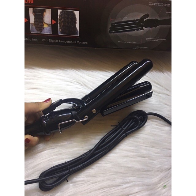 MÁY UỐN TÓC DỢN SÓNG: CF - 869 Màu sắc: đen Điện áp: 220V Nhiệt độ: 140 - 220 độ C Đặc điểm nổi bật: -Máy uốn tóc CF - 869 tạo được nhiều kiểu uốn mà bạn mong muốn như uốn xoăn, uốn lọn to , nhỏ, uốn gợn sóng. -Máy được nhà thiết kế tỷ mỉ, chống dính tóc, bền đẹp, cách điện, cách nhiệt an toàn để khách hàng có thể yên tâm . -Máy làm xoăn tóc CF - 869 có các nút điều chỉnh nhiệt độ tùy theo ý muốn để mái tóc bạn không bị hư tổn. HƯỚNG DẪN SỬ DỤNG: -Bước 1: Gội đầu sạch và sấy khô khoảng 80-85% mái tóc của bạn. -Bước 2: Chia tóc thành từng phần bằng nhau -Bước 3: Lấy 1 lọn tóc ở phía sau làm trước sau đó dùng máy uốn tóc CF - 869 kẹp tóc và giữ khoảng vài dây rùi bỏ ra bạn sẽ thấy lọn tóc đó được uốn bồng bềnh. -Bước 4: Sau khi lọn xong bạn dùng thêm 1 chút dầu dưỡng xịt lên tóc để cho tóc bạn không bị khô và luôn óng đẹp bạn nhé.