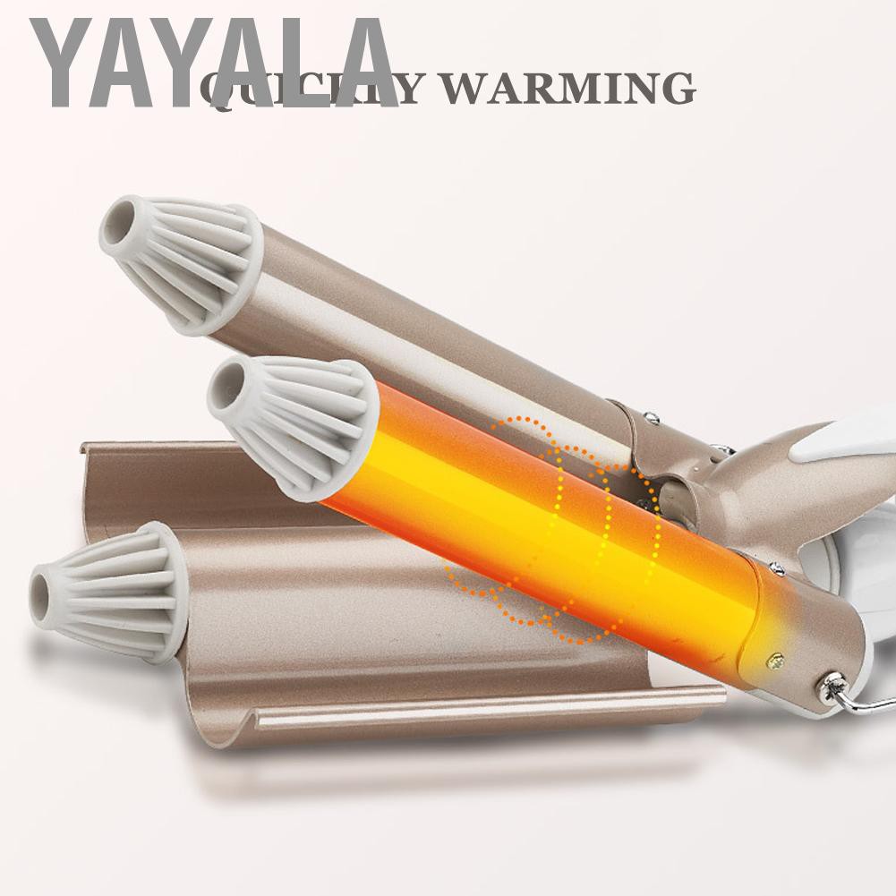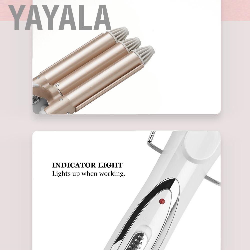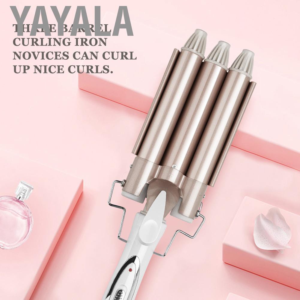 --------------☀Welcome to Yayala☀------------- ✔Good Quality✔Available✔Lowest Price ✈Shipping from oversea,items will arrive your home in 1-2 week. ⏩If you follow us and screenshot to us, you will have a free gift. ❀Please Enjoy Your Shopping Time↖(^ω^)↗ Feature: 1. Ceramic glaze coating provides multiple protection and reduces damage to hair. 2. The front end is anti‑scalding, which is easy to operate, avoiding scalding. 3. Smart and rapid heating, saving waiting time, and allowing the curl to form quickly. 4. Tourmaline material can neutralize the static electricity on the hair and make the hair more shiny. 5. The 3 Barrel ceramic curling iron is a great tool for creating natural and elegant looking curls that last all day. Specification: Condition: 100% Brand New Item Type: Three Barrel Curling Iron Material: ABS Size: Approx. 25mm / 1in Voltage: 100-240V Frequency: 50/60 Hz Power: 30-50W Gears: 2 Gears (170℃,220℃) Package List: 1 x Three Barrel Curling Iron