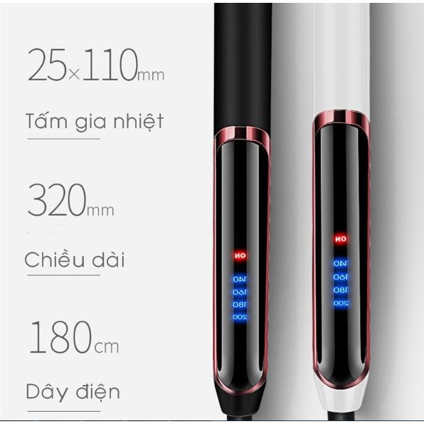 MÁY ÉP DUỖI TÓC CAO CẤP KIỂU HÀN QUỐC NA-8868 · Chiếc máy ép duỗi tóc NA-8868 được sản xuất theo công nghệ hiện đại tiên tiến từ Hàn Quốc kết hợp 2 chức năng vừa làm xoăn khi uốn tóc, vừa làm thẳng tóc khi duỗi. Với chiếc máy uốn duỗi tóc này bạn sẽ thoải mái khi ép duỗi tóc mà không lo máy bị quả tải và chờ lâu như khi bạn sử dụng máy ép loại mini. Tấm gia nhiệt dài tiện dụng giúp bạn tiết kiệm thời gian gấp 5 lần Đèn LED thông báo mức nhiệt đang hoạt động. Dây điện xoay 360 độ cùng Nút POWER trong thân máy gọn gàng khi thao tác. Máy nóng nhanh chỉ trong 10 giây, với công nghệ độc quyên PTC từ Hàn Quốc tạo được nhiệt độ nóng đều không bị vượt ngưỡng giúp bảo vệ được mái tóc của bạn. Thanh gia nhiệt kết hợp cùng lớp phủ Ceramic Tourmaline giúp mái tóc bạn chống hư tổn tuyệt đối. Bổ sung gấp đôi lượng ion âm giúp bảo vệ lớp biểu bì của tóc, tránh làm lớp biểu bì bong tróc do tiếp xúc với nhiệt, từ đó duy trì độ ẩm và làm tóc suôn mượt. Đặc điểm kỹ thuật: Có 4 mức chỉnh nhiệt: (140 ° C - 220 ° C). Phù hợp cho mọi loại tóc : Mềm, Thường, Dày, Khô Sử dụng cho cả 2 loại tóc ướt và Khô : Duỗi tóc thẳng / Uốn tóc xoăn / khóa bên trong và bên ngoài Công suất định mức: 35W Điện áp định mức: 110v-220v Tần số định mức: 50Hz Bảo vệ quá nhiệt: Có Nhiệt độ tăng nhanh: 10S và ổn định Bảng điều khiển: Nút bấm ON/OFF tiện lợi Lớp men phủ gốm: Gốm Tourmaline giúp chống hư tổn tuyệt đối. Lựa chọn màu: đen / trắng Phương pháp gia nhiệt: Phần tử gia nhiệt PTC theo công nghệ tiên tiến Hàn Quốc Trọng lượng tịnh của sản phẩm: 300G Chiều dài dây: 1,8M