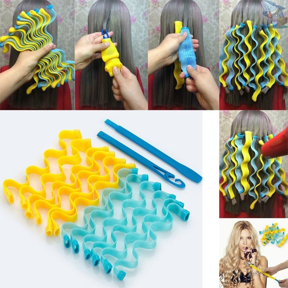 SMART`Magic Hair Curlers DIY Hair Salon Curlers Rollers Tool Soft Large Hairdressing Tools. Here are hair curler tools for you to make magic curls and waves while does not damage your hair. Do steps before fall asleep, and you will see beautiful curls and waves next day. Features: Will create healthy-looking magic curls and waves, without damaging your hair. Easy operation to make glossy, smooth, defined, healthy curls every time. Used on all ages, all hairy types from thin straight hair to thick thick hair, wigs and weaves also creates defined smooth curls. The tip for sleeping with hair curlers at night is to tie them up and back with a scarf, find a comfy position and you'll love the curls you wake up with. Best gift for your family, friends and lovers. Specifications: Material: Plastic Quantity: 8Pcs, 12Pcs, 24Pcs (optional) Item Size: 290 * 25mm / 11.42 * 0.98in Package Weight: 8Pcs: 85g / 3ounce 12Pcs: 100g / 3.53ounce 24Pcs: 200g / 7.05ounce Package Size: 300 * 30 * 20mm / 11.81 * 1.18 * 0.79in Note: The item has blue and yellow which quantity is random. Package List: 8 / 12 / 24 * Hair Curlers (optional) 1 * 2 fold Hook