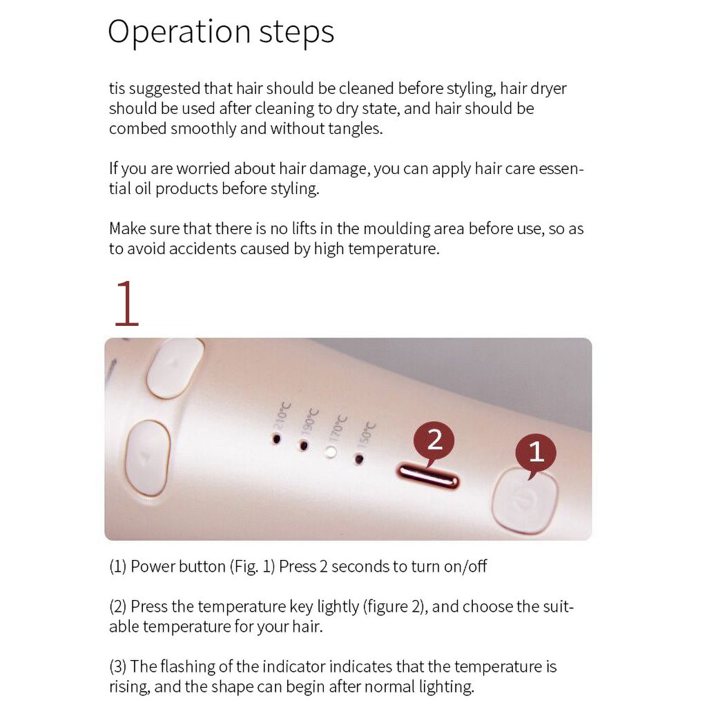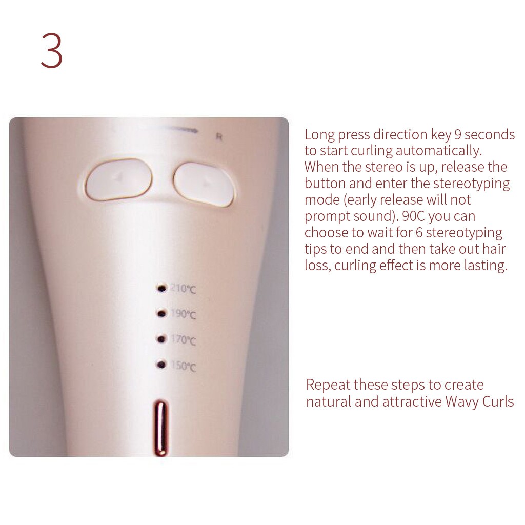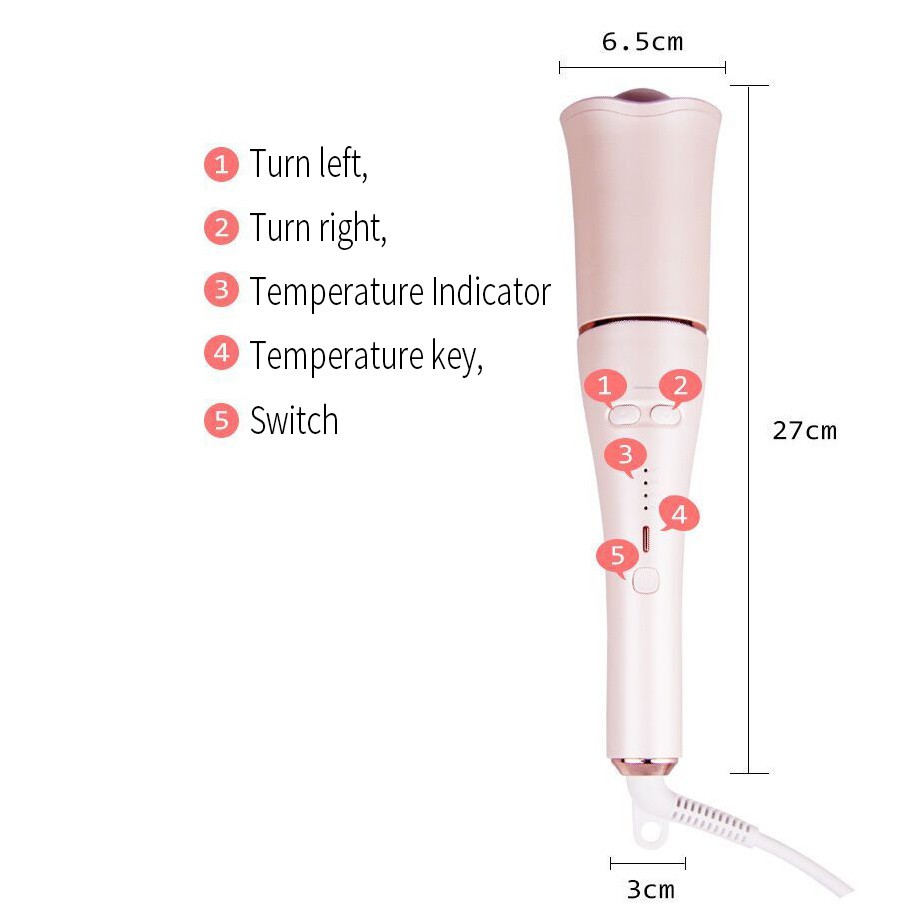 Four-gear Ceramic Curler Automatic Heater Rose Style Temperature Adjustment Feature: This innovative curler draws hair into a specially-designed chamber where it perfectly heats hair to create stunning curls and waves every time. Offers easily adjustable temperature settings and a selection of preset temperatures for each hair texture to avoid unnecessary heat damage. Healthier-looking and more beautiful curls. Designed with protection to create a perfect curl, this Curling Iron makes curling hair easier than ever before. Negative ions condition hair for shinier Easily adjustable temperature settings 150/170/190/210 degree One-hour automatic shut off for safety Dual Voltage AC 110-240V for convenient travel Swivel cord for effortless styling Package Content: 1 Set Curler