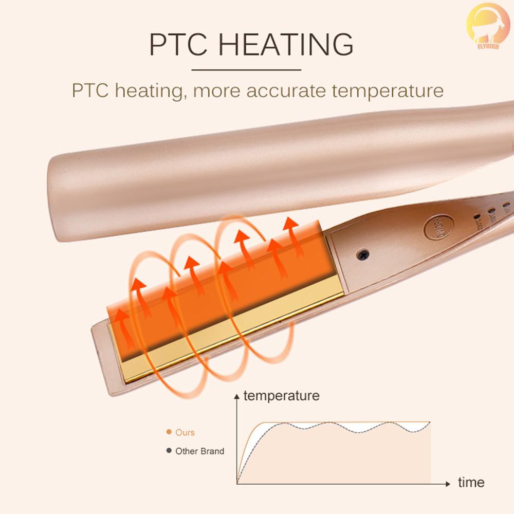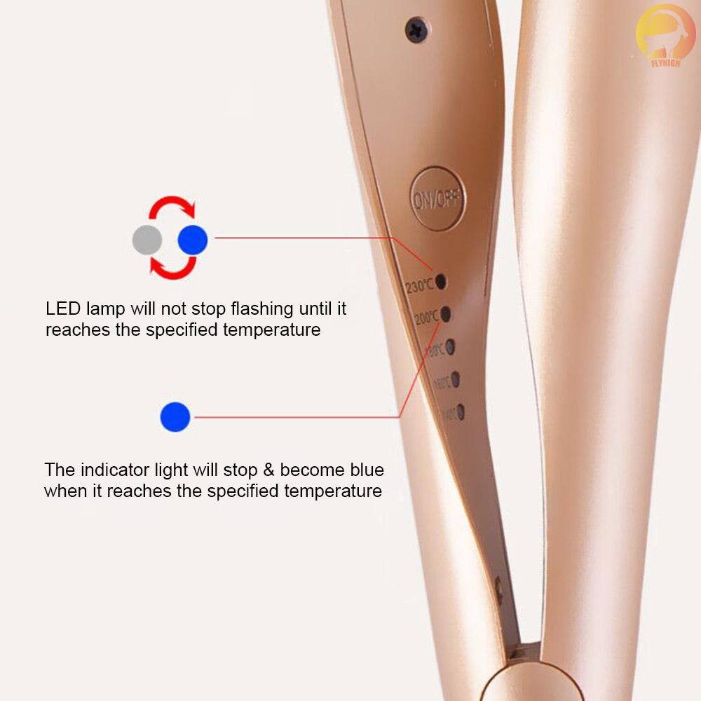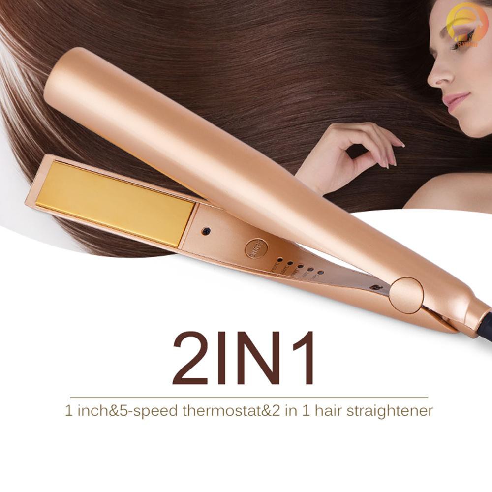 F & H 2-In-1 Flat Iron Hair Curler & Straightener with LCD Temperature Adjustment & 3D Tourmaline Heating Plate for Hair Styling Curling Wand Description: This 2-in-1 hair styling tool Features 100% ceramic tourmaline heating plate, LED indicator light and unique design, which is easier for your hair styling. It is suit for trvaling and home using for all hair lengths. Features: * 2-In-1 hair curler and hair straightener with 100% ceramic tourmaline heating plate. Heating time is less than 30 seconds, great for creating any hairstyle within minutes. * Small and portable, suitable for travel, party or using at home to meet the needs for different occasions. * Unique design makes hair styling simpler and makes straight hair smoother, curly hair more flexible. * 5 adjustable temperature settings for all types hair: 140°C(284°F), 160°C(320°F), 180°C(356°F), 200°C(392°F), 230°C(450°F) * 360° rotating power cord can rotate at all angle to avoid being wrapped around the wire when hair styling. * Suitable for all hair lengths, can be use no matter the hair is dry or wet. Specifications: Item Type: Hair Curler Color: Gold Power Type: Rechargeable Voltage: 100-240V Power Consumption: 45W-65W Plug Type: EU Plug/ US Plug (Optional) Item Size: Approx. 27 * 3.5cm / 10.63 * 1.37in Item Weight: Approx. 377g / 13.30oz Package Size: Approx. 36.2 * 10.5 * 6.7 cm / 14.25 * 4.13 * 2.64in Package Weight: Approx. 535g / 18.87oz Package List: 1 * Hair Straightener (EU Plug/ US Plug) 1 * User Manual