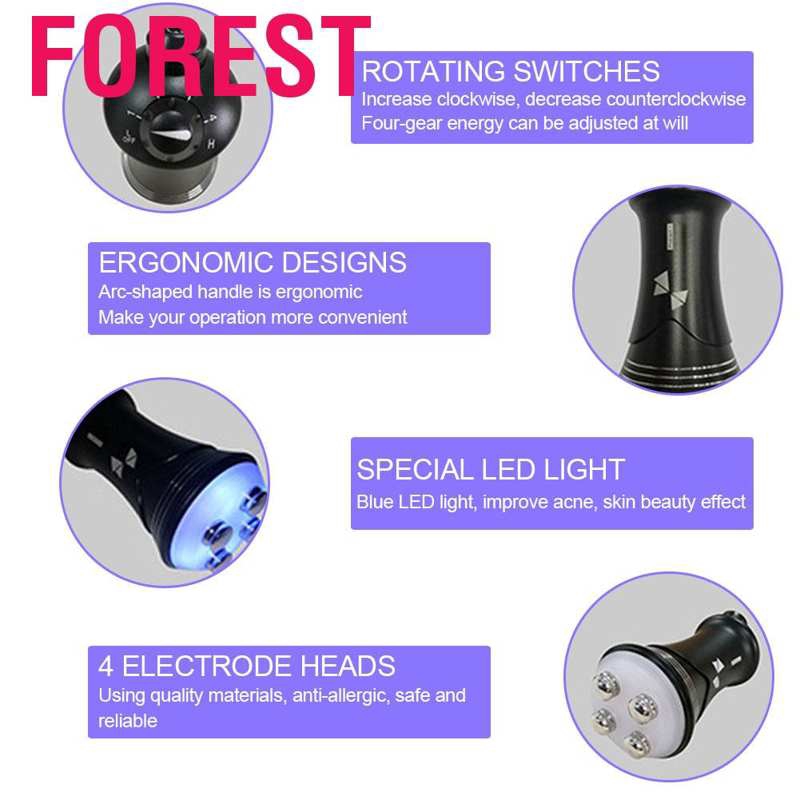 ---------------------------------------------------❀Welcome❀--------------------------------------------------- Welcome to my store ,We insist on the lowest price to sell the best quality items ✔Ready to sent ✔High quality ✔Best price ✔Brand new 100% ☞Surprises for you: ❀Shop Voucher Code: get more Discount ❀ Follow shop/ “Like” Items: Priority Shipping & Free Gift ☞PS: If you want a free gift, please send me the screenshot that you follow my shop and leave a message on your order. ★Evaluation: Your evaluation is quite important to us. So if you are satisfied with our goods, please give us a positive evaluation. If not, please contact us before evaluating. Under your supporting, we could offer you much better services. ---------------------------------------------------✔ Product ✔--------------------------------------------------- Feature: 1. Electroporation technology and electroosmosis technology are integrated, needle free designs will not hurt your skin. 2. Works directly on the skin to increase the permeability of skin tissues, allows hydrophilic molecules to penetrate and enter the cell. 3. Blue LED light will effectively improve acne, make skin smoother and delicate. 4. The deep collagen fibers and elastic fibers are rearranged to restore smooth and delicate skin and shape V-face. 5. Arc-shaped handle is ergonomic, make your operation more convenient. 6. The 4 electrode heads use quality materials, anti-allergic, safe and reliable. 7. Knob switches, only need to gently rotate, you can turn on the machine. Specification: Condition: 100% Brand New Item Type: Beauty Machine Material: ABSColor: Black Power Consumption: 10W Frequency: 50Hz / 60Hz LED Wavelength: 415nm Plug: US 110V-240V Output Frequency: 90kHz Size: Approx. 115x60x60mm/4.5x2.4x2.4in Package List: 1 x Host 1 x Power Cable 1 x Manual