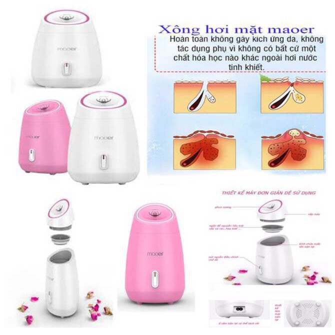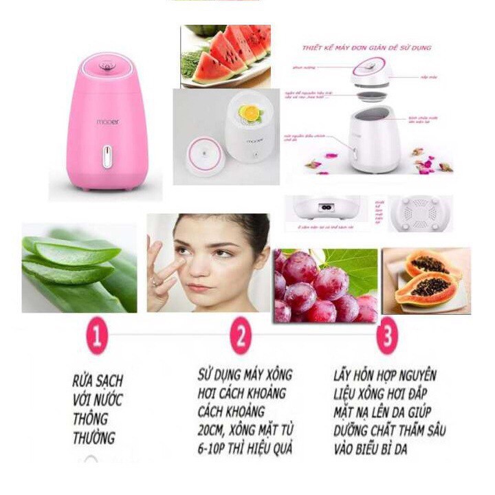MÁY XÔNG MẶT HOA QUẢ MAOER - Máy Maoer này, khách có thể thái quả dưa chuột, cà chua, lá bạc hà... vào thẳng máy xông và dùng sau 5p khi máy phun hơi. Chẳng phải lích kích nấu nấu rồi lọc nước. 🆘 CÁCH HƯỚNG DẪN SỰ DỤNG MÁY XÔNG MẶT THẢO DƯỢC ✅Máy xông mặt này nhỏ chỉ to như bàn tay thôi, Nên mang đi đâu cũng tiện nhé. ✅Bất kỳ hoa, quả, lá 🌸🥒🌿nào làm đẹp đều có thể dùng để xông nhé. ( Dưa leo, dưa hấu, đu đủ, nho, dâu, hoa hồng, oải hương, lá bạc hà, nha đam, chanh, xả...) 1⃣Chuẩn bị nguyên liệu và nước. 2⃣Đổ nước vào khoang chứa nước ko vượt quá mức Max 3⃣Cắm điện, bật nguồn chờ khoảng 1-2p nước sôi rồi hưởng thụ 10-15 phút. 😄😄 🆘Đặc biệt có thể dùng trực tiếp, nhanh ko tốn thời gian và tốn công đun nấu.