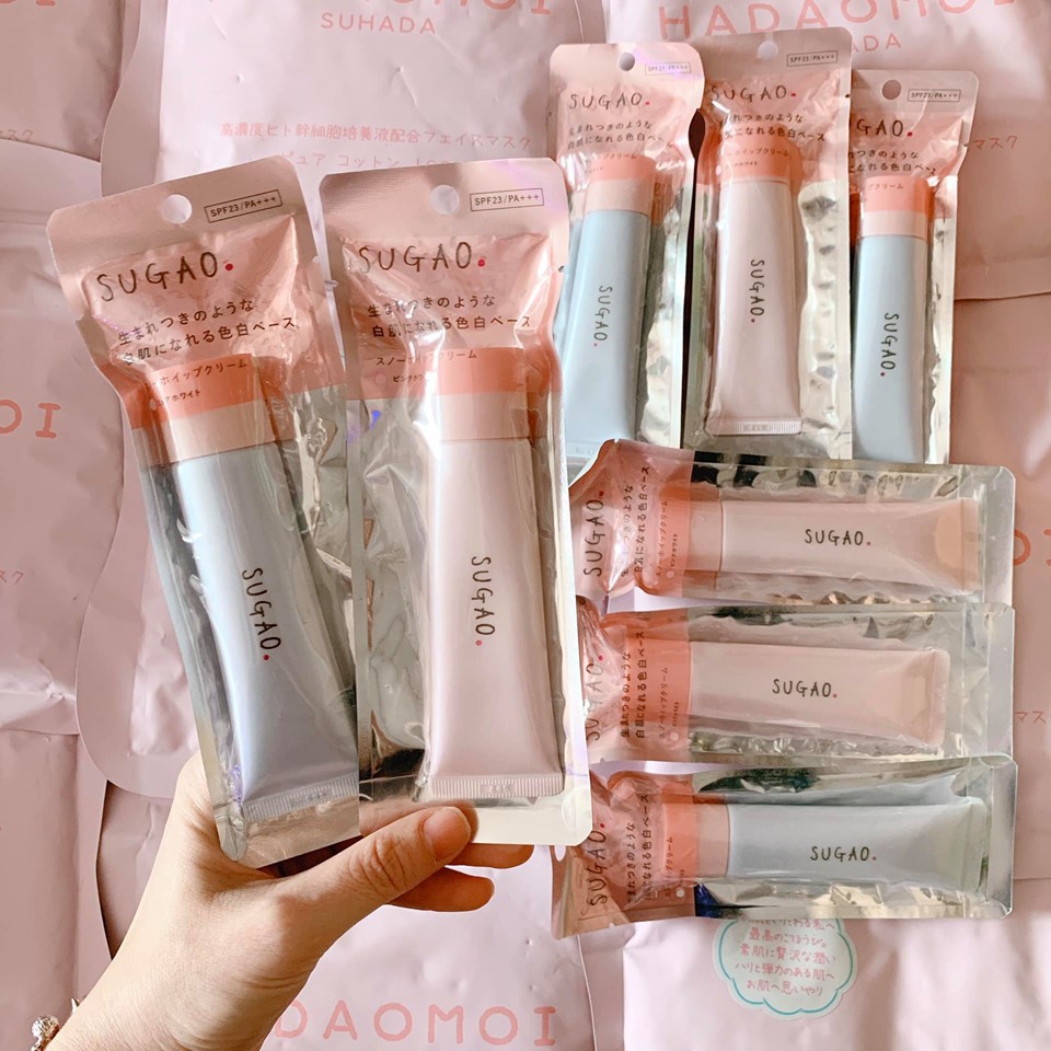 🌼Sugao Có 3 loại mẫu mới 2019 như sau *******Mẫu mới 2019 1.Sugao Air Fit CC Cream Smooth ( 2 tone - tự nhiên và trắng ) - típ trắng: che khuyết điểm tốt, lên tone, tone sáng tự nhiên- cho lớp nền trong suốt, tự nhiên- thích hợp cho mọi loại da vì có 2 tone dễ sử dụng: tone trắng và tone tự nhiên 2.Sugao Snow Whipped Cream Pure White - típ xanh: bật tone da- thích hợp cho mọi loại da và da dầu Ko chia tone da 3.Sugao Snow Whipped Cream Pink White - típ hồng: bật tone da lên trắng hồng- thích hợp cho mọi loại da. Ko chia tone da Công dụng của kem trang điểm CC Cream Sugao Air Fit SPF23 PA+++ như sau: -CC Sugao Air Fit với tông mỏng, nhẹ nhàng, tự nhiên như chưa sử dụng 1 loại kem trang điểm nào nhưng đem lại cho bạn làn da mịn màng, xinh tươi và không gây bí da, kem tan nhẹ vào da, khô nhanh chóng và ráo mịn tức thì như vừa đánh phấn phủ. -Sử dụng kem trang điểm Sugao với Soft Forcus là công dụng tuyệt vời giúp làn da bạn sáng long lanh, che tốt các khuyết điểm như: Vết nhăn, nám, lỗ chân lông, da sần sùi, da không đều màu… cho bạn làn da mịn màng trong suốt , tự nhiên, bảo vệ da khỏi tác hại của ánh nắng mặt trời khá tốt. -Kem trang điểm CC Sugao Air Fit SPF23 PA+++ còn là sự lựa chọn hoàn hảo cho những ai sở hữu da dầu nhờn nhờ khả năng che phủ cao, kiểm soát nhờn, giữ ẩm cho da mà vẫn mang lại nét rạng ngời, tươi tắn cho bạn gái. -Mặc dù độ dày kem khi đánh lên da là 0.01mm nhưng sử dụng CC Cream Sugao lại mang đến cảm giác nhẹ nhàng tự nhiên như mặt mộc, không làm bưng bít lỗ chân lông, không gây mụn cám, mụn đầu đen hay bất kỳ hư tổn nào cho da.