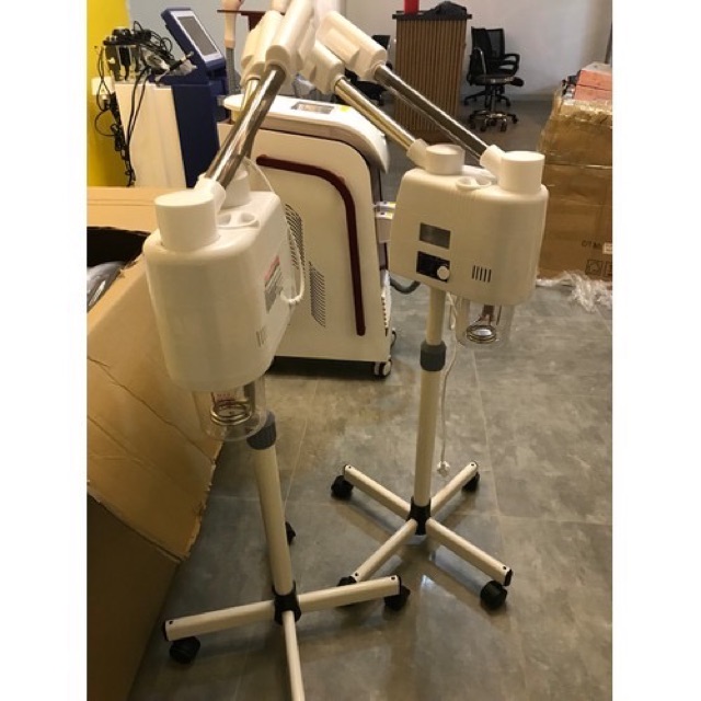 Máy xông mặt 2 cần nóng lạnh KL-838với 2 chức năng phun sương nóng – lạnh và thiết kế khe sử dụng xông hương bên ngoài giúp làm mềm các tế bào chết, làm sạch sâu lỗ chân lông; ức chế hắc tố, mờ dần các đốm đen, thu nhỏ lỗ chân lông, giảm viêm - sưng và tác dụng chống dị ứng. Thông tin sản phẩm máy xông hơn nóng & lạnh Trong các thiết bị spa cần xông hơi nóng lạnh 2 đầu KL-839 có thiết kế hiện đại, dễ xếp gọn, hữu dụng cho Spa, Thẩm mỹ viện, Trung tâm da liễu, và gia đình, cá nhân. Dùng xông hơi mặt trước và sau liệu trình, góp phần làm sạch sâu làn da, hỗ trợ cho các bước chăm sóc da: tẩy tế bào chết, hút mụn; đồng thời se khít lỗ chân lông, tạo cảm giác khoan khoái thư giãn. Tính năng máy xông hơn nóng & lạnh (KL-838 ) Tính năng xông hơi nóng lạnh OZONE DT789 làm sạch sâu làn da, thải độc tố và se khít lỗ chân lông Tính năng xông hơi nóng: Làm sạch sâu lỗ chân lông, đào thải bụi bẩn, chất nhờn ra ngoài, tạo sự thông thoáng cho da dễ hấp thu các dưỡng chất, vitamin, serum… Bên cạnh đó, còn tăng tuần hoàn máu, trả lại làn da sáng màu, hồng hào, khỏe khoắn Tính năng xông hơi lạnh: Săn chắc da, se khít lỗ chân lông, phát huy khả năng dưỡng ẩm của các tinh chất, và tạo cảm giác thư giãn cho khách hàng sau liệu trình. Tính năng Ozone: tiêu diệt vi khuẩn gây mụn, khử mùi, làm ẩm da và tăng các tế bào Oxy hóa, mang lại làn da tươi trẻ, mịn màng. Đặc tính nổi bật của máy xông hơi DT789 Đặc điểm nổi bật nhất là chức năng phun sương nóng và phun sương lạnh rất dễ dàng cho việc chăm sóc da. Như chúng ta đã biết khi được tiếp xúc với hơi nước ấm da sẽ mềm ra, lỗ chân lông nở rộng hơn, từ đó dễ dàng cho các thao tác làm đẹp tẩy rửa bụi bẩn đồng thời thực hiện các thao tác dưỡng da, thải độc tố tích tụ dưới lỗ chân lông. Ngoài ra hơi nước ấm sẽ giúp làm mềm lỗ chân lông giúp lỗ chân lông lưu bài tiết chất độc, ngăn chặn lão hóa da. Từ đó xua đi những nếp nhăn đáng ghét. Chức năng phun sương lạnh sẽ giúp bề mặt da se khít lỗ chân lông, đẩy lùi các vết thâm nám, các sắc tố đen làm màu da không được tươi nhuận. Đồng thời chống viêm, chống sưng cho da, giúp chị em có được làn da mịn màng như ý.