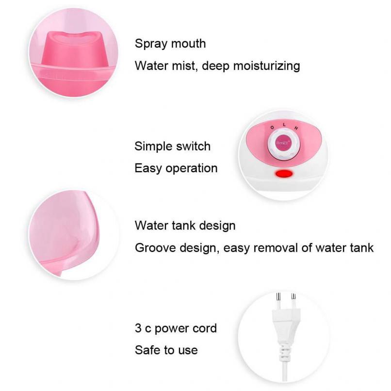 Features: 1. It can replenish the missing face moisture effectively and maintain the balance of moisture on the skin, reduce wrinkles and make the skin soft, damp and elastic. 2. Can erase hair follicles and drain pores, fat, dust etc. Also can kill acnes effectively, prevent and cure . 3. Steam opens the soothing pores to help remove dirt, bacteria and makeup remnants, leaves the skin soft and smooth like silk. 4. Promotes face blood circulation and skin metabolism, and make the skin smooth, moist, tender and pink, and may also delay aging skin of the face. 5. Add spices and essential oils to steam, then you can enjoy sauna aromatherapy at home. Specification: Item Type: Face Steamer Material: Plastic Color: Pink Plug: EU Plug Voltage: 220V Package Weight: Approx.744g Package Include: 1 * Main Machine 1 * Face Cover 1 * Small Nasal Cover 1 * Measure Cup Note: 1. The real color of the item may be slightly different from the images shown on the website caused by many factors such as your monitor brightness and brightness of the light. 2. Please allow 1-2 cm error due to manual measurement. Please make sure you do not mind before you bid. #FaceSteamer #FacialSteamer #ProfessionalFaceSteamer #