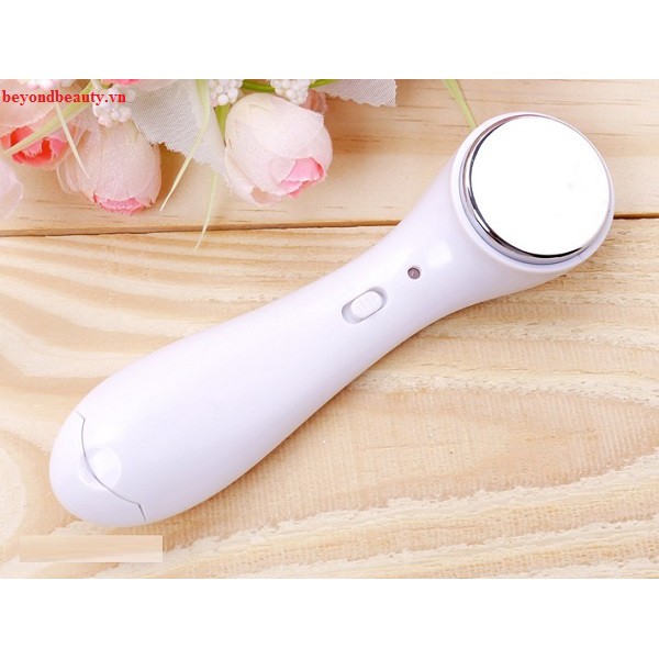 +Chị em bôi kem dưỡng không matxa chỉ hấp thụ 30% dưỡng chất, để đẩy sâu dưỡng chấ từ mặt nạ, serum , kem dưỡng vào trong da chúng ta nên dùng kèm máy matxa ion để da hấp thụ 100% dưỡng chất trong kem. +Làm sạch với tác dụng của Ion sẽ làm sạch lớp da bên trong, làm sạch chất bẩn phía ngoài lỗ chân lông và giúp làm khít lỗ chân lông. +Làm mềm da với tác động như vỗ nhẹ lên mặt sẽ làm da mềm mại, dễ dàng hấp thu dưỡng chất. Máy có 2 chức năng ion(+) và ion (-) -Chức năng ion(+): đèn xanh hút sạch các bụi bẩn còn xót lại sau khi rửa mặt giúp da thư giãn giúp và làm khít lỗ chân lông