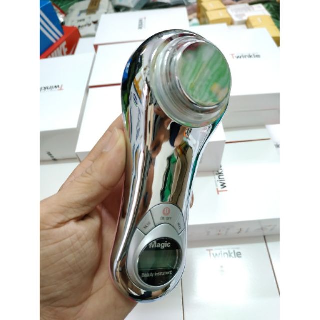 Máy massage mặt của Panasonic EH - ST97 được gọi là cực phẩm đã về hàng cho các chị đẹp nha.. ❤️❤️ nhìn đẹp muốn xỉu 🥰🥰🥰🥰 Thông tin máy: Máy k box chỉ dùng qua vài lần, đẹp xỉu luôn các chị phụ kiện vẫn còn đủ ạ. Xuất xứ: Hãng Panasonic nhật bản Model: EH-ST97 Trọng lượng: khoảng 180g Power: AC100~240v 50-60Hz, Dạng pin sạc Model mới với nhiều điểm rất đáng để đầu tư. Với 5 chức năng: ✔️Làm sạch sâu (dùng với toner) ✔️Precare (Đẩy collagen, nhau thai, hyaluronic) ✔️Đẩy tinh chất (serum, cream) ✔️Làm sáng da (Dùng với vitamin C) ✔️Làm lạnh (siêu thích) Cải tiến hơn đáng kể cho tất cả các chức năng: ➖Đẩy dưỡng chất sâu hơn ➖Tăng sản sinh collagen giúp trẻ hóa da ➖Làm sáng da tốt hơn ➖Và bàn sóng âm phía sau tăng diện tích điện cực lên 1.6 lần so với bản ST86 👉🏻Do đó tăng hiệu quả dưỡng da hơn bao giờ hết!!! Máy chăm sóc da mặt Panasonic ST97 là model mới năm 2019, model cải tiến nâng cấp của Panasonic ST86, Với màu sắc mới đẹp hơn, sang hơn, Chức năng Precare được cải tiến đáng kể: đẩy dưỡng chất tốt hơn, sâu hơn, đều hơn, giúp cho việc chăm sóc da hàng ngày đơn giản và hiệu quả hơn. Về thiết kế và các chức năng của máy: - Giữ nguyên thiết kế body giống model đàn anh Panasonic ST86, thiết kế thon gọn mặt trước là đầu đẩy dưỡng hình tam giác, mặt sau đầu Precare hình chữ nhật bo tròn các góc. Toàn body được sơn màu vàng Gold rất đẹp và sang. - Trang bị 5 chức năng, chế độ chăm sóc da: ❤ Chế độ làm sạch: công nghệ Ion hút sạch các chất bẩn sâu trong lỗ chân lông, cho làn da sạch sẽ, nhẹ nhàng. ❤ Chế độ Precare: Công nghệ sóng rung giúp phân tách lớp biểu bì tạo đường đi để các dưỡng chất đi vào da dễ dàng và sâu hơn. ❤ Chế độ đẩy dưỡng: Đẩy các dưỡng chất, mỹ phẩm vào da, giúp nuôi dưỡng các tế bào da tốt, dần mang lại làn da đẹp hơn, khỏe hơn. ❤ Chế độ sáng da: thật ra chế độ này là đẩy các dưỡng chất có thành phần làm sáng da như Vitamin C, giúp da trắng sáng hơn. ❤Chế độ làm lạnh: đây là chế độ sau cùng của một chu trình chăm sóc da, giúp đóng lại lỗ chân lông, giúp lỗ chân lông nhỏ dần đi, đem lại làn da mịn màng hơn. #panasonicehst97 #panasonicehst98 #panasonicehst86 #panasonicehst76 #panasonicehst75 #maydida #hadacrie #maylamdep #maymassage
