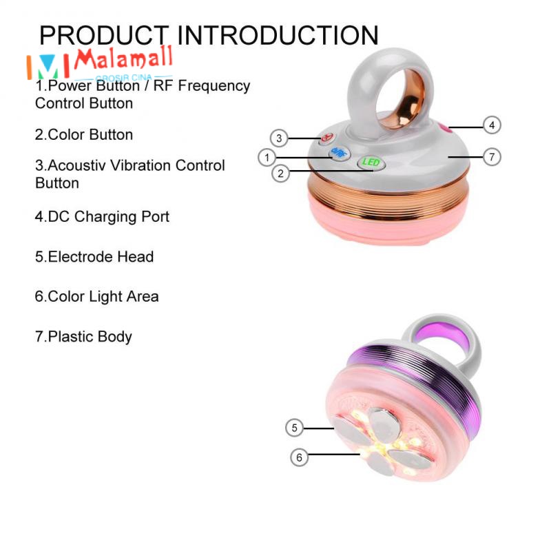 💕💕Welcome to Malamall! Features: -Ligting and reshape your face. -Tightening, improve skin texture, increase skin elasticity, improve sequelae. -Lightens spots, whitens skin, improves true and flase wrinkles. -Softens fine lines and dark circles to improve skin metabolism. -A beauty instrument which improves superficial and deep orange peel-like tissue and slimming. -High frequency vibration, introduces essence to deep skin to promote nutrient absorption. -Lifting and tightening. -Stimulates muscle vitality, help skin to restore elasticity and improve blood circulation. Specification: Item Type: Beauty Instrument Material: ABS Optional Color: 01#Gold, 02#Purple Working Power: Less than 6V Battery Capacity: 3.7V / 700mAh Working Temperature: 0-45°C Net Weight: 128g Input Voltage: DC 5V Working Time: 15minutes x 4times Battery: Lithium Size of Product: 5.5 x 5.5 x 6cm / 2.2 x 2.2 x 2.4inch Function: Remove fine lines, Eliminate big pores, Fade black eye circus, eye bags, double chin, etc Package List: 1 x Main Product 1 x USB Cable 1 x English Manual