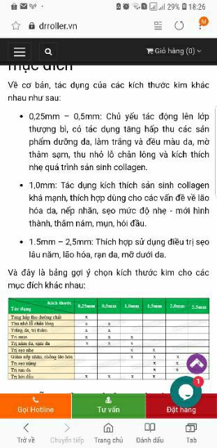 Vui lòng ib chọn size trước khi đặt mua 🌹🌹🌹 KIM LĂN TAY VÀNG 😍❤️❤️❤️ + Kim lăn tay ZGTS gồm 192 đầu kim là phương pháp lăn kim điều trị sẹo thâm, sẹo rỗ , se khít lỗ chân lông chống lão hóa da + Kích thước đầu kim gồm : 0.25 0.5 0.75 1.0 1.5 2.0 + cách chọn kích thước kim - sẹo mụn ( 1-1.5 ) - Triệt tiêu tế bào mỡ ( 0.25 ) - Trị vết nhăn ( 1.0 - 1.5 ) - Trị lỗ chân lông to ( 1.0 ) - Trị thâm nám tàn nhan ( 0.5 ) - Rạn ra bụng ( 1.5 ) - Giãn mao mạch ( 0.25 ) Ship cod toàn quốc Ai quan tâm inbox cho em nhé 0868.88.77.65