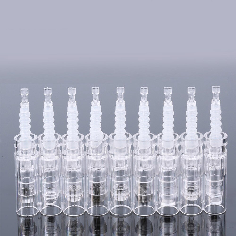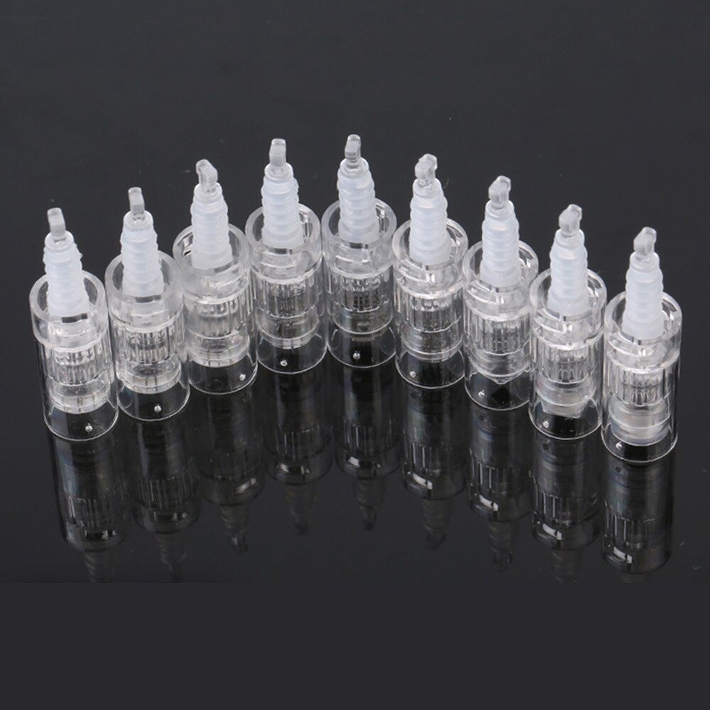 Features: It is an eletronic automated micro needle,with guides that adjusts needles length. It is hygienic,convenient,and safe.The perpendicular movement of the needle tip enables treatment of narrow areas, and lessen the pain. Quantity: 10pcs Cartridge: 1 pin /3 pins /5 pins / 7 pins /9 pins / 12 pins / 24pins / 36 pins /42 pins / Round Nano / 3D Square Nano / 5D Square Nano Needles. Needles port Type: Bayonet Port, not Sprial/Screw (if you do not know what it mean, please contact to us). Machine Pen: Don't include it. Application: Just replace the needle,Can't use it directly. Needle length is adjustable to different sizes depend on the areas and purposes of the treatment. It is more convenient to treat narrow area such as nose, around eye or mouth. Note: If you need the Electric Auto Derma Pen please contact us. Thanks !
