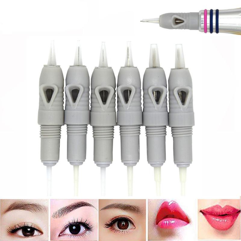 Specification: Material: Stainless Steel + Plastic Color: As the picture shown Needle type: Quantity: 10PCS 1D 1R 3R 5P 3F 5F 7F Suitable for Eyebrow eyeline permanent tattoo pen machine Packaging including 10pcs tattoo pen needle