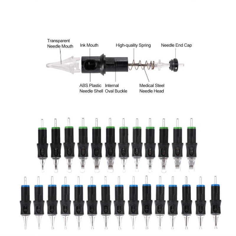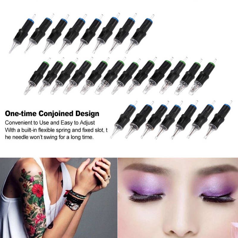 ✿Welcome to my store,. ✔Ready to send ✔High quality ✔Best price ✔Brand new 100% ✘NO Price ✘NO Receipt ✘NO Shopee Logo ✘NO Supplier Info ☞Tips: Follow shop/ Click“Like”Item: . Attach Photos in 5 star comment: We will give you special gift next time. ------------------------- ♥ Product Introduction ♥ ------------------------- Features: Suitable for eyebrows, eyelids and lips, also for small tattoo design. Sterilized packaging, no worry about being infected, safe to use. ABS material, stable operation and high-quality. The design of R-type round mouth needle with bevel connection to observe the length of the tattoo pin. M1 needle bar design is more advanced which adopts the arc type of needle mouth, letting the tattoo needle contact skin without dead spaces. It works with almost all kinds of tattoo machines Made of precise mold, fine tattoo pin configuration. Low noise when tattooing, great gift for a tattooist. Specification: Item Type: Tattoo Cartridge Needle Quantity: 10pcs Color: Black Material: ABS Package Weight: Approx. 60~64g Package List: 10 x Tattoo Cartridge Needles