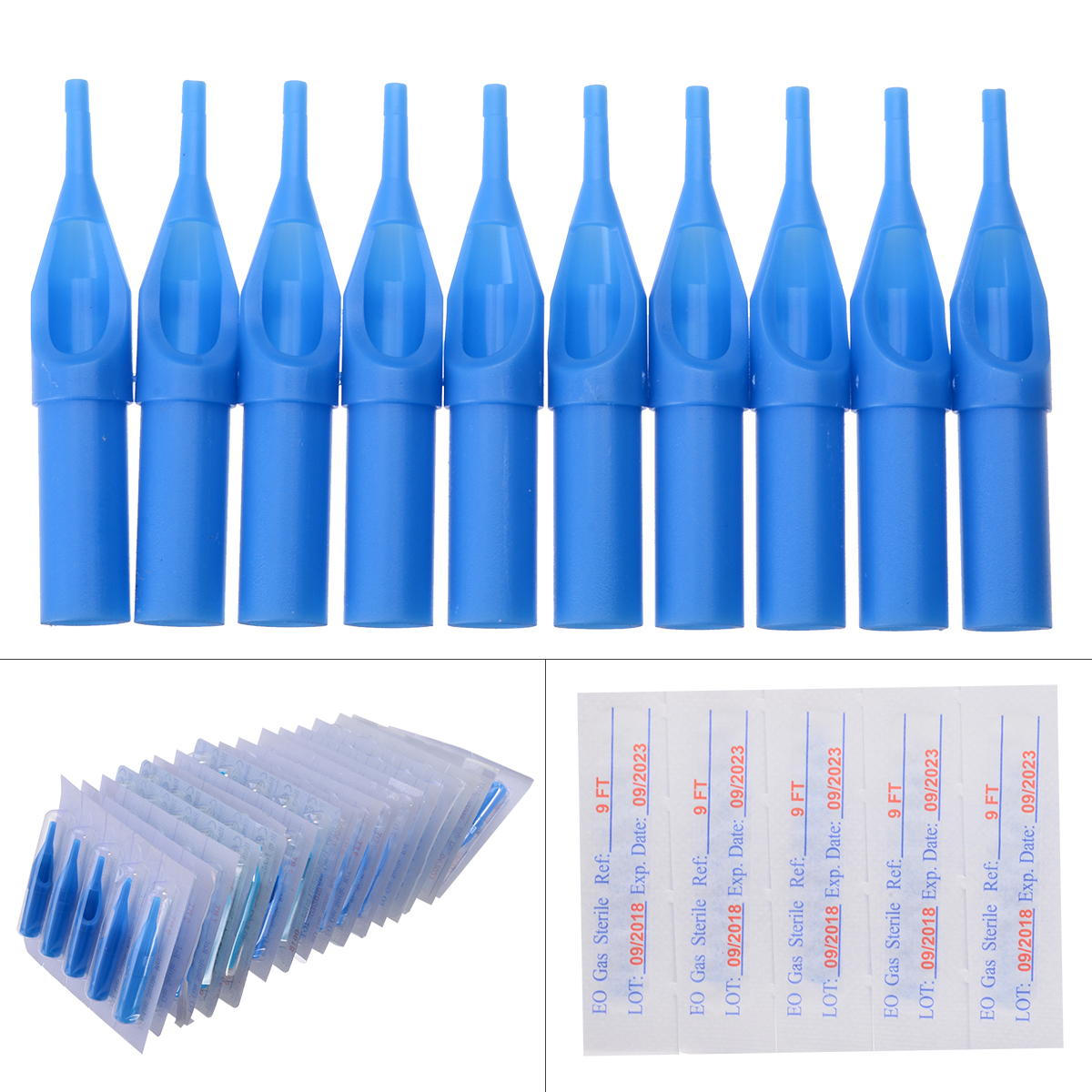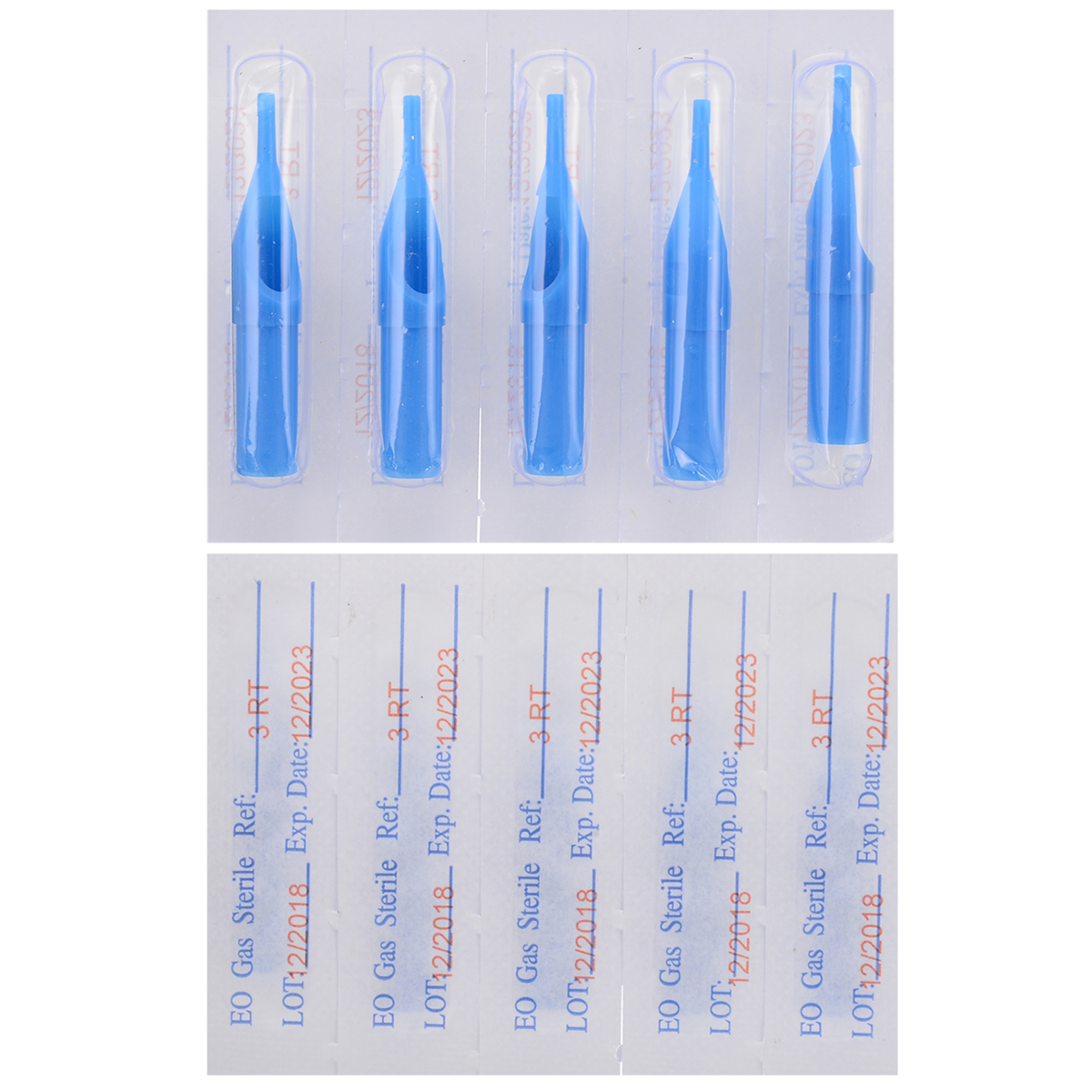 Specification: 100% brand new and high quality Material: plastic Color: Blue, As the picture shows Quantity: 100pcs (10x3RT, 10x5RT, 10x7RT, 10x9RT, 10x3DT, 10x5DT, 10x7DT, 10x5FT, 10x7FT, 10x9FT) Each tip was Pre-sterilized with EO Gas (ethylene oxide). Made from high quality plastic material Disposable tips not reusing Keep safety and avoid to cross-infection Each tip is individually packaged in and it's sealed sterilized individual blister pack Professional great for tattooing Package included: 100pcs x disposable tattoo tips Note: Due to the hand measurement, there have size error about 1-5mm Item color displayed in photos may be showing slightly different on your computer monitor since monitors are not calibrated same