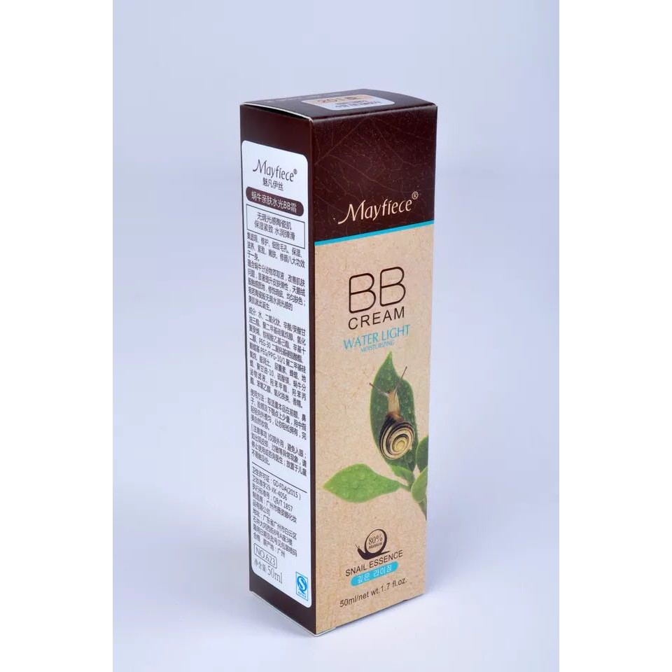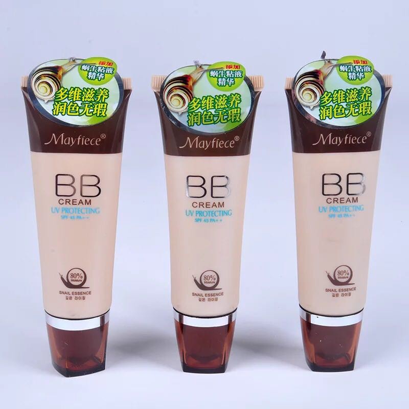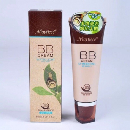 tuýp 50ml - Với tinh chất ốc sên chiếm đến 80%, kem lót BB mayfiece sẽ thật sự làm bạn hài lòng về độ mướt mịn trong kem cũng như sự nuôi dưỡng da từ sau bên trong ngay cả khi trang điểm. - Chỉ số chống nắng SPF 45 PA ++ sẽ làm bạn vơi đi nỗi lo lắng mỗi khi ra đường - Sản phẩm phù hợp với mọi loại da. Không kích ứng da. - tẩy trang kĩ sau khi trang điểm