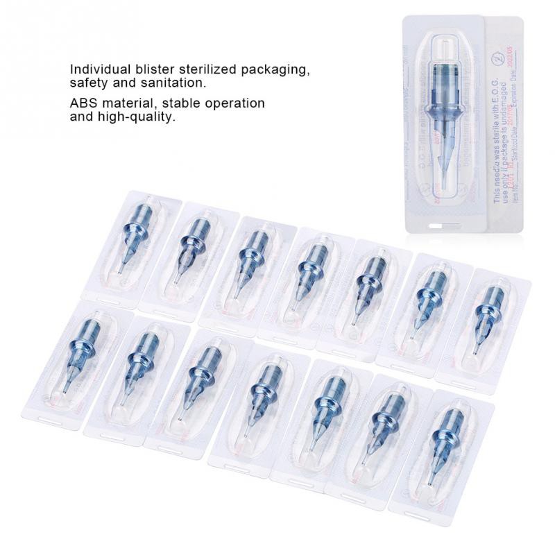 Suitable for eyebrows, eyelids and lips, also for small tattoo design Low noise when tattooing, giving a comfortable tattoo experience Description: Features: -Suitable for eyebrows, eyelids and lips, also for small tattoo design. -Sterilized packaging, no worry about being infected, safe to use. -ABS material, stable operation and high-quality. -The design of R-type round mouth needle with bevel connection to observe the length of the tattoo pin. -M1 needle bar design is more advanced which adopts the arc type of needle mouth, letting the tattoo needle contact skin without dead spaces. -Low noise when tattooing, giving a comfortable tattoo experience. Specification: Item Type: Tattoo Cartridge Needle Quantity: 10pcs/set Needle Color: Silver Material: ABS Total Length: Approx. 6cm / 2.4inch Weight: Approx. 46-54g If the type above is not listed on the website options, please left a note to tell your needs. Shelt Life: 5years Package List: 1 x Set Of 10PCS Tattoo Cartridge Needles