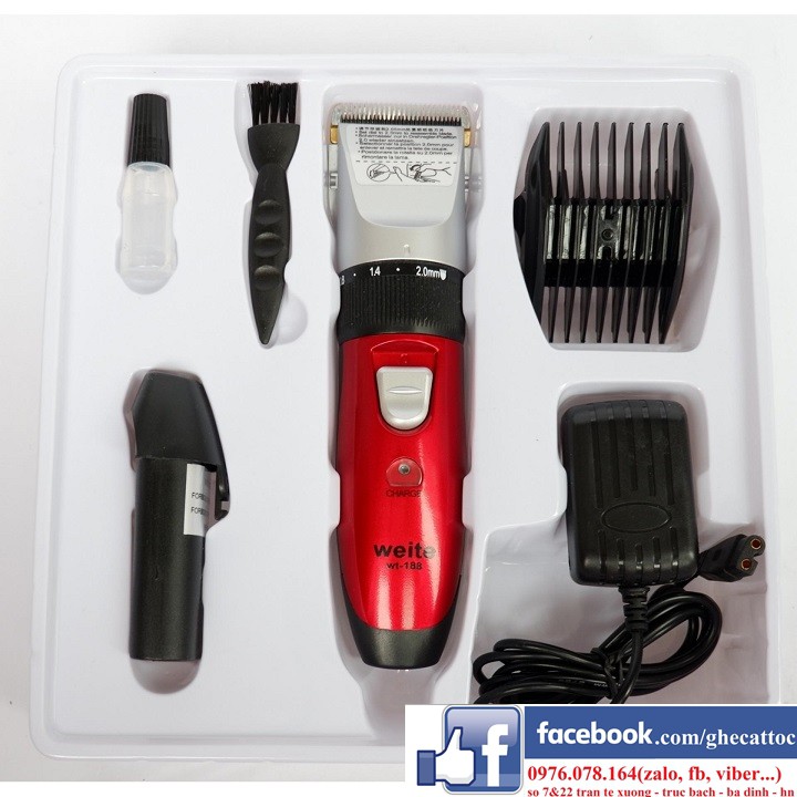 TÔNG ĐƠ CẮT TÓC WEITE WT-188 Giá 330k + ship Thông số kỹ thuật Tông đơ cắt tóc chuyên nghiệp Weite WT-188 – Nguồn: 100-240V – Thời gian sạc: 3-4h – Tiếng ồn nhỏ, động cơ khỏe – Thời gian sử dụng liên tục: 60-90 phút – 2 pin NiMH – Kích thước máy: 8 x 4 x 4 cm – Điện áp: 110-220V/ 50HZ/ 12W Ưu điểm tông đơ cắt tóc chuyên nghiệp Weite 188 -Lưỡi ceramic an toàn, sắc bén, dễ dàng bảo quản – Mũi dao cắt rất sít với lược tạo cho máy rất an toàn và không làm đau cũng như không trầy sước đối với da bé. – Máy có 2 pin, thời gian sử dụng liên tục từ 60 phút trở lên – Thiết kế gọn gàng, dễ dàng thao tác – Trên thân máy có thể xoay vòng tròn, thay đổi lưỡi tông đơ để chọn chế độ cắt: 0.8mm, 1.4mm, 2.0mm. – Sản phẩm gồm: tông đơ, pin dự phòng, dầu bôi trơn, chổi vệ sinh máy, adaptor sạc, và 2 lược răng: 2mm, 4mm, 6mm, 9mm. – Điện áp: 110-220V/ 50HZ/ 12W Chú ý khi sử dụng: -Trước khi sử dụng nên tra dầu bôi trơn vào đầu lưỡi thì khi cắt sẽ bén hơn và máy chạy êm hơn. – Mỗi khi sử dụng xong cần vệ sinh tông đơ sạch sẽ và bảo quản nơi khô ráo. – Không sử dụng chất tẩy rửa tránh bị ăn mòn – Sạc pin quá lâu sẽ làm giảm tuổi thọ của máy Mua hàng liên hệ 0976078164 Địa chỉ 22 trần tế xương, trúc bạch, ba đình, hà nội Ship cod toàn quốc nhận hàng thanh toán #tongdocattoc #tongdo #tongdoweite #tongdocattocweite #weite #weite188 #wt188 #tongdocattocgiadinh #tongdocattoctreem #mypham #myphamtoc #ghecattoc #phukienbarber #phulieutoc #dodungnganhtoc #myphamnganhtoc #salontoc #barbershop