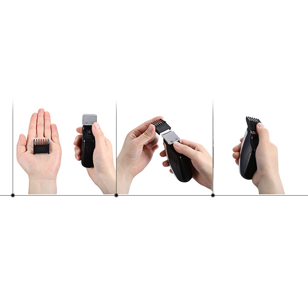- Lưỡi thép không gỉ, không làm tổn thương da đầu, động cơ mạnh mẽ, thích hợp cho tất cả các loại tóc cắt tỉa. - Được trang bị với 3 cữ dài khác nhau, bạn có thể dễ dàng kiểm soát các chiều dài bạn muốn để cắt và tạo ra tóc khác nhau phong cách. - Có thể dùng cắt tóc cho bé, cho trẻ em, cạo viền, cạo sát hoặc trimmer tạo kiểu, cắt tóc ít và thưa. - Chất liệu: ABS + thép không gỉ blade - Nguồn: Pin 1 * AA (Không bao gồm), 3W - Vật liệu lưỡi: Thép carbon blade - Bảo hành 3 tháng (lỗi kỹ thuật)