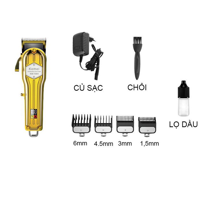 Sản phẩm Tông Đơ Cắt Tóc Vỏ Thép Nguyên Khối,Màn Hình Hiển Thị Lcd Kemei 1984 Vàng + 1983 Trắng,Chuyên Dùng Fade Tóc Và Cắt Lược hiện đang được bán tại Shopee.