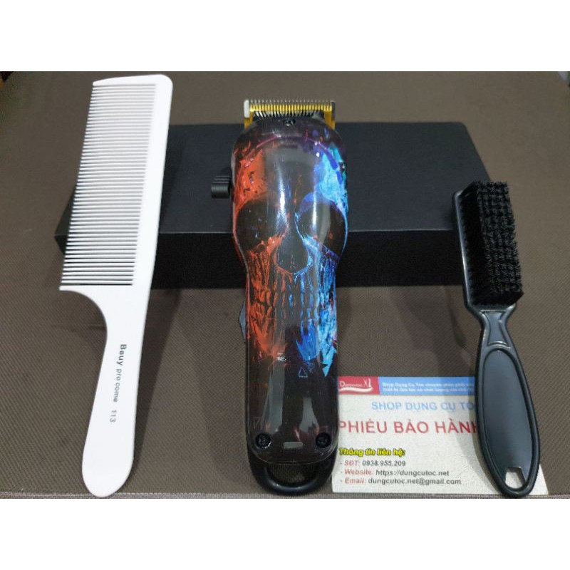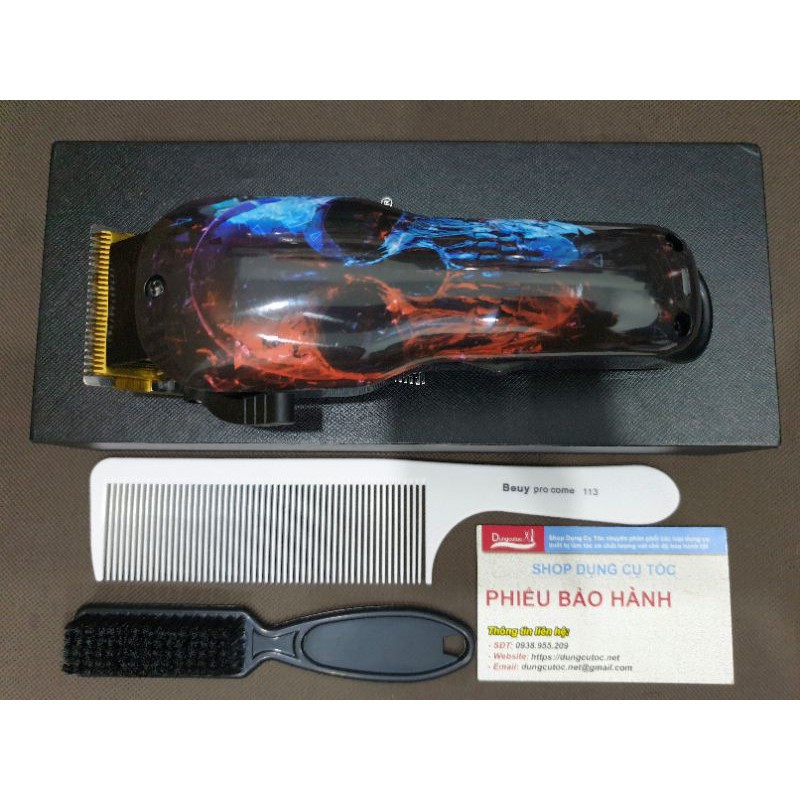 SIEU KHỦNG Thông số kỹ thuật: - Thương hiệu: Barber Shop - Model: KingBB - Loại tông đơ: Tông Fade chuyên nghiệp chạy 2 tốc độ công suất cực đại 15W - Loại lưỡi: Tông lưỡi thép không gỉ 440C cực bền, cực bén cắt siêu ngọt - Màu sắc: Xanh đen - Chất liệu thân máy: Nhựa ABS với họa tiết đầu lâu Barber siêu ngầu và cực kỳ ấn tượng - Loại tông Pin sạc, có thể sạc lại, dung lượng cao 2200mA - Pin dự phòng: Không - Có đèn Led xanh khi máy hoạt động và khi sạc - Thời gian sạc: 3 giờ - Thời gian sử dụng: liên tục 4 giờ - Công suất động cơ: 15W, động cơ chạy cực mạnh. Ở tốc độ 1 máy chạy 7000 vòng, ở tốc 2 máy chạy 9000 vòng nên đường cắt cực kỳ sắt nét. - Nguồn điện sạc: 100 - 240v, 50Hz - Công dụng: Chuyên dùng để cắt Fade, cắt khung cho anh em thợ Barber - Xuất sứ: Đài Loan Phụ kiện kèm máy bao gồm: - 1 Tông đơ Barber Shop - 1 Bộ 4 cữ với kích cỡ 3, 6, 10, 13mm - 1 Chai dầu tra lưỡi - 1 Chổi vệ sinh - 1 Cục sạc Adapter kèm dây sạc rời - 1 Sác hướng dẫn tiếng Trung/Anh + Tất cả sản phẩm bán tại Shop Dungcutoc.net đều được chụp hình và quay clip thật tế nên anh em cứ yên tâm mua hàng, Shop luôn giao đúng hàng, đúng sản phẩm như quảng cáo. 🚦Sđt liên hệ: 0938.00.29.00 - 0814.999 993 - 0814.999 997 🌐 Website: dungcutoc.net 💈 CAM KẾT HÀNG CHẤT LƯỢNG NHƯ QUẢNG CÁO 👌 KIỂM HÀNG KỸ LƯỠNG, ĐÓNG GÓI CẨN THẬN 🛑 TIÊU CHÍ KHÁCH HÀNG LÀ THƯỢNG ĐẾ