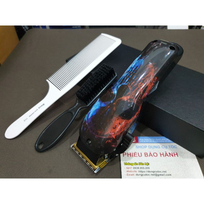 CỦ XẢ Thông số kỹ thuật: - Thương hiệu: Barber Shop - Model: KingBB - Loại tông đơ: Tông Fade chuyên nghiệp chạy 2 tốc độ công suất cực đại 15W - Loại lưỡi: Tông lưỡi thép không gỉ 440C cực bền, cực bén cắt siêu ngọt - Màu sắc: Xanh đen - Chất liệu thân máy: Nhựa ABS với họa tiết đầu lâu Barber siêu ngầu và cực kỳ ấn tượng - Loại tông Pin sạc, có thể sạc lại, dung lượng cao 2200mA - Pin dự phòng: Không - Có đèn Led xanh khi máy hoạt động và khi sạc - Thời gian sạc: 3 giờ - Thời gian sử dụng: liên tục 4 giờ - Công suất động cơ: 15W, động cơ chạy cực mạnh. Ở tốc độ 1 máy chạy 7000 vòng, ở tốc 2 máy chạy 9000 vòng nên đường cắt cực kỳ sắt nét. - Nguồn điện sạc: 100 - 240v, 50Hz - Công dụng: Chuyên dùng để cắt Fade, cắt khung cho anh em thợ Barber - Xuất sứ: Đài Loan Phụ kiện kèm máy bao gồm: - 1 Tông đơ Barber Shop - 1 Bộ 4 cữ với kích cỡ 3, 6, 10, 13mm - 1 Chai dầu tra lưỡi - 1 Chổi vệ sinh - 1 Cục sạc Adapter kèm dây sạc rời - 1 Sác hướng dẫn tiếng Trung/Anh + Tất cả sản phẩm bán tại Shop Dungcutoc.net đều được chụp hình và quay clip thật tế nên anh em cứ yên tâm mua hàng, Shop luôn giao đúng hàng, đúng sản phẩm như quảng cáo. 🚦Sđt liên hệ: 0938.00.29.00 - 0814.999 993 - 0814.999 997 🌐 Website: dungcutoc.net 💈 CAM KẾT HÀNG CHẤT LƯỢNG NHƯ QUẢNG CÁO 👌 KIỂM HÀNG KỸ LƯỠNG, ĐÓNG GÓI CẨN THẬN 🛑 TIÊU CHÍ KHÁCH HÀNG LÀ THƯỢNG ĐẾ