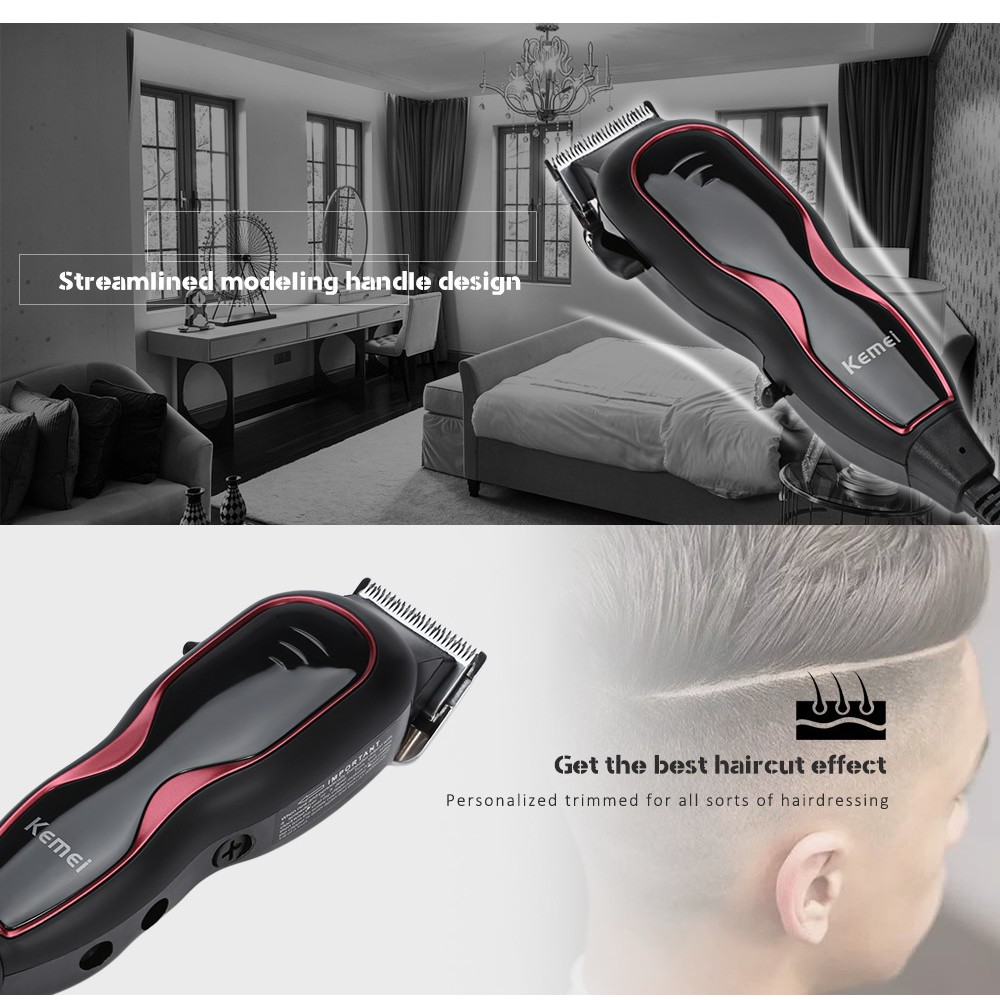 Lưỡi dao được làm bằng thép không gỉ, sắc bén với độ bền cao có thể cắt được những vùng rậm rạp nhất. Có 4 lược căn độ dài 3,6,9,12 mm cho bạn thoải mái tạo kiểu tóc. Có thể tăng giảm tốc độ của tông đơ thông qua khe tăng giảm. Dây điện dài 2m giúp bạn thoải mái cắt tóc mà không bị vướng víu. Bộ sản phẩm bao gồm: 1 tông đơ, 4 lược căn độ dài, 1 chai dầu máy, 1 lược chải tóc, 1 cây tăng giảm tốc độ. Công suất 12w Điện áp 110-220v Cách thức sử dụng: Cắm điện trực tiếp Bộ sản phẩm bao gồm: 1 tông đơ, 4 lược căn độ dài (3, 6, 9, 12 mm), 1 lược chải tóc, 1 chai dầu máy, 1 cây tăng giảm tôc độ .