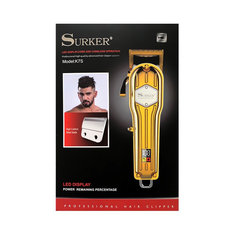 Sản phẩm Tông Đơ Cắt Tóc Chuyên Nghiệp Vỏ Thép Nguyên Khối Surker K7S Pin Lithium 2000Mah Tặng Cữ 1,5 Và 4,5Mm Cữ Nhựa hiện đang được bán tại Shopee.