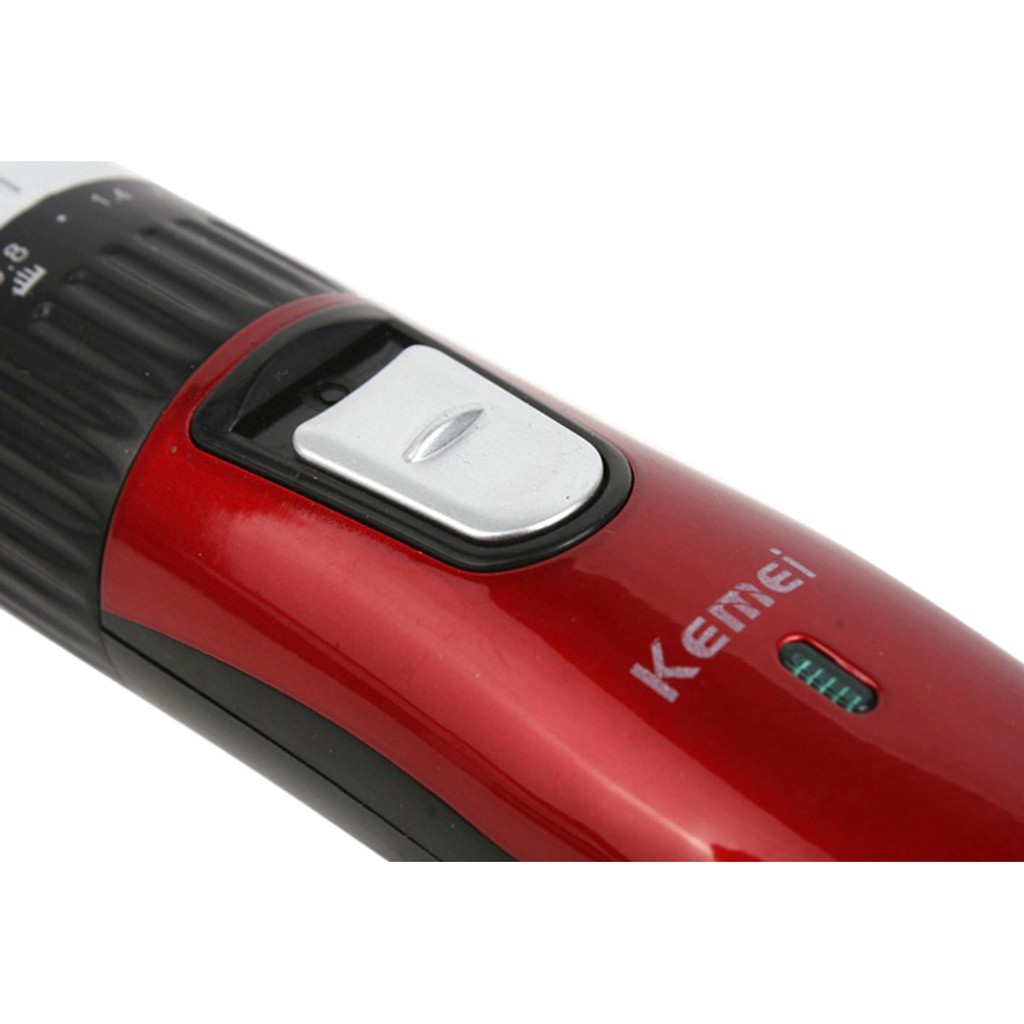Lưu ý: Màu sắc nút công tắc và đầu tông đơ có thể thay đổi (màu trắng hoặc đen) theo từng đợt nhập hàng. Tông đơ cắt tóc trẻ em Kemei 730 Video hướng dẫn sử dụng: Công suất: 2w, Nguồn điện 220-240v 50/60Hz Xuất xứ: Trung Quốc Màu sắc: đen pha đỏ ( màu sắc nút công tắc và đầu tông đơ có thể thay đổi màu trắng hoặc đen theo từng đợt hàng) Bộ sản phẩm bao gồm: 1 tông đơ, 1 pin sạc, 1 sạc pin, 1 lược chỉnh cỡ có 3 cỡ khác nhau, 1 lọ dầu máy, 1 chổi (CỮ LƯỢC KHI NHẬN SẢN PHẨM ĐƯỢC GẮN LUÔN TRÊN ĐẦU MÁY ).