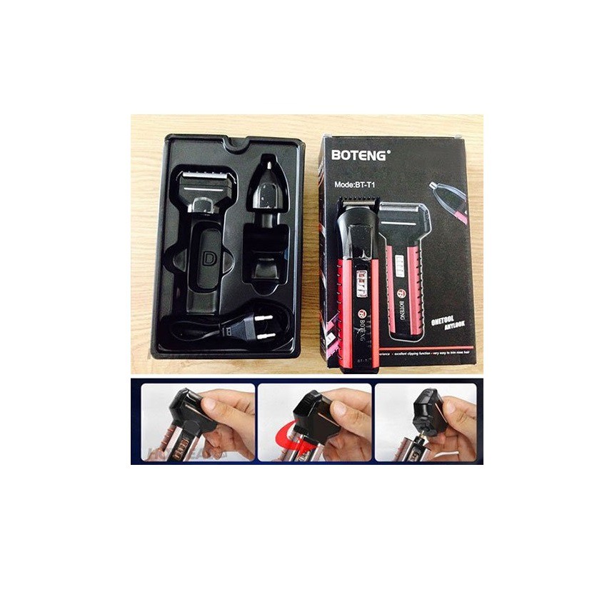 Ưu điểm của tông đơ đa năng 3 in 1 Boteng BT-T1 so với các tông đơ thông thường : - Là sản phẩm tiên tiến thông minh: tông đơ kết hợp 3 trong 1 rất tiện dụng, cùng 1 thân máy có thể sử dụng được cả 3 công dụng ( cắt tóc , cạo râu , cắt lông mũi ) bạn không còn phải cồng kềnh với từng sản phẩm làm đẹp riêng biệt mỗi khi đi công tác, du lịch…. - Thiết kế kiểu dáng gọn nhẹ, mẫu mã đẹp mắt: với kích thước chỉ bằng chiếc tông đơ cắt tóc bình thường thậm chí còn nhỏ gọn hơn, còn về thẩm mỹ thì chắc chắn bạn sẽ hài lòng bởi sự nam tính và tự tin mà nó mang lại. - Chất lượng đảm bảo, sử dụng pin sạc với dung lượng khá lớn: thời gian sử dụng trong 1 lần sạc lên tới hơn 1 giờ phù hợp với những chuyến đi dài hay đi xuất khẩu lao động giúp bạn tiết kiệm chi phí ở nơi đất khách quê người. - Cách sử dụng đơn giản dễ dàng: bạn không cần mất nhiều thời giản, chỉ cần thao tác đơn giản tháo lắp là bạn có thể sử dụng dụng cụ cắt tỉa theo ý muốn của mình. Tông đơ cắt tóc kiêm máy cạo râu, máy cắt lông mũi BOTENG BT-T1 Thông tin chi tiết sản phẩm : - Tên sản phẩm : Tông đơ cắt tóc đa năng Boteng BT-T1 - Bộ sản phẩm gồm: 1 thân máy + 1 lưỡi cạo râu + 1 lưỡi cắt tóc + 1 lưỡi cắt lông mũi + 1 dây sạc + 1 chổi - Công suất: 13 W - Nguồn điện: 220- 240 V - Tần số: 50/60 Hz - Thời gian sạc: 8 tiếng - Thời gian sử dụng: 60 phút - Có đèn chỉ báo trạng thái sạc pin - Có kèm dao cạo trên thân máy - Kích thước máy (D x R xC): 14.5 x 5.7 x 2.5 cm Tính năng sản phẩm: - Đầu tỉa lông mũi có tác dụng cắt bớt những sợi lông mũi dài,thủ phạm gây ngứa và cảm giác hắt xì ở mũi. - Đầu máy cạo râu thiết kế 2 lưỡi sắc bén giúp cạo râu nhanh chóng và an toàn nhanh chóng lấy lại vẻ lịch lãm. - Đầu tông đơ cắt tóc giúp tạo kiểu tóc dễ dàng. - Nút điều khiển ngay trên thân máy giúp bạn đổi tay một cách dễ dàng. - Đèn led hiển thị báo hiệu quá trình sạc/đầy hoặc đang sử dụng. Hướng dẫn sử dụng: - Sạc đủ pin trước khi sử dụng - Trước khi bắt đầu chọn đầu máy thích hợp cho mục đích của bạn - Sử dụng công tắc để lắp đầu máy - Bật công tắc nguồn để bắt đầu công việc cắt tỉa - Sau khi sử dụng xong tháo lắp đầu máy vệ sinh cho máy và cất hộp bảo quản máy. Chú ý khi sử dụng: -Trước khi sử dụng nên tra dầu bôi trơn vào đầu lưỡi thì khi cắt sẽ bén hơn và máy chạy êm hơn. - Mỗi khi sử dụng xong cần vệ sinh tông đơ sạch sẽ và bảo quản nơi khô ráo. - Không sử dụng chất tẩy rửa tránh bị ăn mòn. - Sạc pin quá lâu sẽ làm giảm tuổi thọ của máy.
