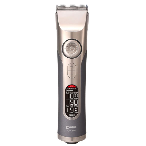 - Tông đơ CHC-980 kiểu dáng sang trọng, độ bền cao, máy chạy cực êm, lưỡi sắc bén. - Máy có hệ thống điều chỉnh 5 tốc độ: 5000 vòng, 5500 vòng, 6000 vòng, 6500 vòng, 7000 vòng. - Động cơ có bộ phận giảm ồn, máy chạy êm ái, ổn định. - Sử dụng pin đời mới nhất Lithium Ion, Polymer và có sạc cốc thuận tiện. - Lưỡi dao cắt bằng thép không gỉ tráng một lớp titan (độ bền cao). - Thiết kế tiên tiến với màn hình màu LCD báo tốc độ, thời lượng còn lại của pin. - Công suất: 7W. - Màu sắc: Đen Slivery. - Adapter sạc điện, sử dụng pin sạc. - Có thể dùng điện trực tiếp khi cần thiết. - Có nấc chỉnh độ cao thấp của 2 lưỡi dao khi muốn chuyển cắt hay tỉa. - Có 8 lược căn độ dài tóc : 3 - 6 - 9 - 12 - 15 - 18 - 21 - 25mm. - Công tắc thuận tiện cho cắt tóc bằng cả hai tay - Bộ sản phẩm gồm: 1 máy + 1 bộ sạc + 1 chổi + 1 lọ dầu + 8 lược căn độ dài + hộp sản phẩm. - Kích thước máy ( D x R x C): 19.5 x 4.5 x 4cm. - Thời gian sử dụng: 250 Phút. - Nguồn điện: 100-240V 50/60Hz 0.3A