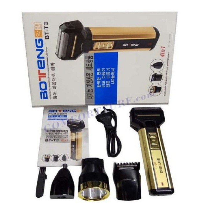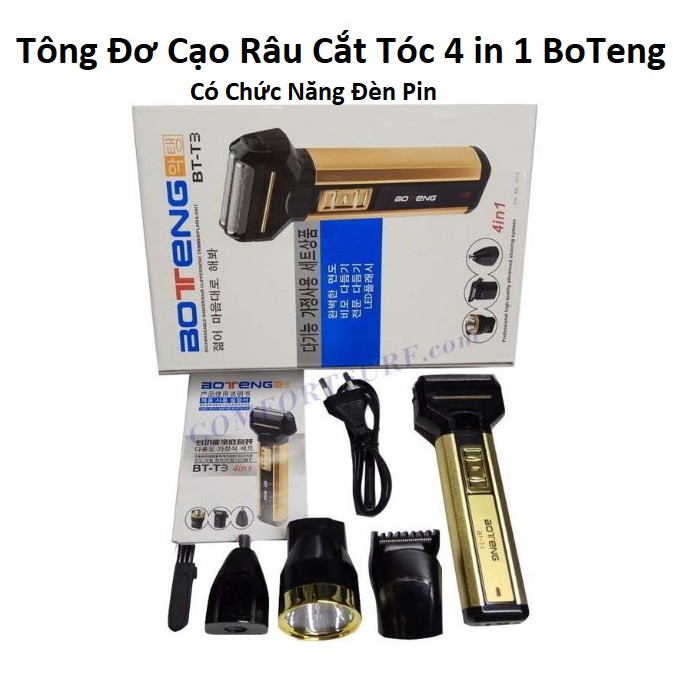 Sản phẩm Bộ Máy Cạo Râu,Tông Đơ Cắt Tóc 4 Trong 1 Boteng Bt-T3 Thế Hệ Mới (Đen Vàng) hiện đang được bán tại Shopee.