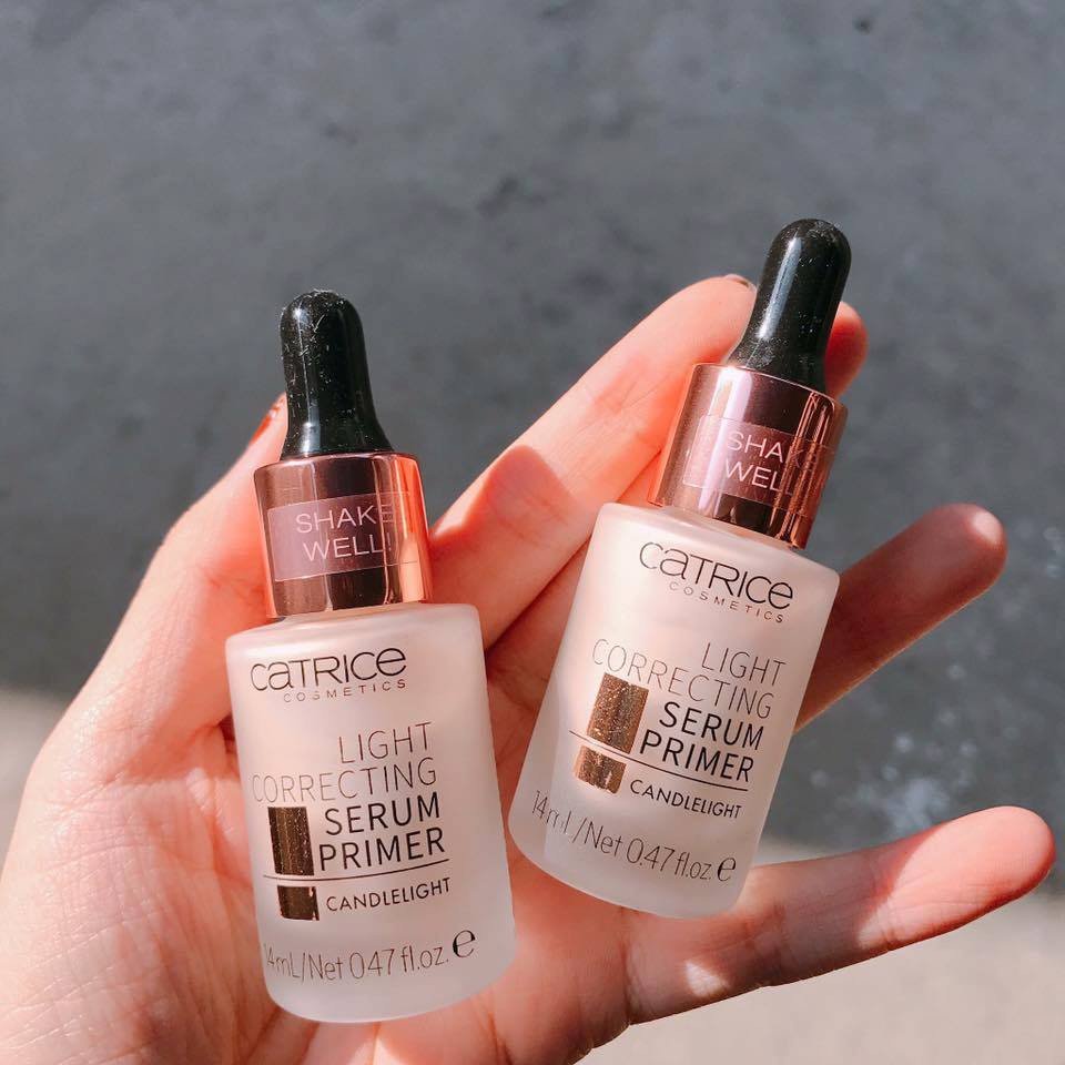 Kem lót CATRICE Light Correcting Serum Primer về lại rồi nha - Kem lót siêu ok cho chị em: ✔ Chất kem lỏng, mịn mướt và độ bám cực kì cao. ✔ Đặc biệt, kem lót là một dạng serum nên có tinh chất dưỡng ẩm cực ổn, không lo da khô bị mốc. ✔️Tạo độ bóng nhẹ, cái này thích hợp với makeup look hàng ngày, với những cô nàng thích đơn giản, gọn nhẹ. Không cần nhiều bước Primer sẽ thay Highlight giúp da bạn có độ bóng nhẹ, khỏe khoắn. ✔Tone màu có ánh nhũ nhẹ màu vàng hồng, theo như Catrice hứa hẹn thì sp phù hợp với mọi loại da. Khá bất ngờ và ấn tượng về hiệu quả sản phẩm đem lại, khi sử dụng kem lót này trước khi trang điểm, lớp nền giữ được tới 9h đồng hồ. 👉👉 Lắc kỹ trước khi sử dụng cho lớp kem đều hơn nhé.