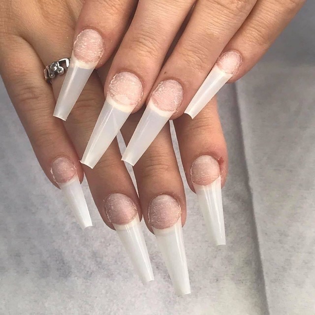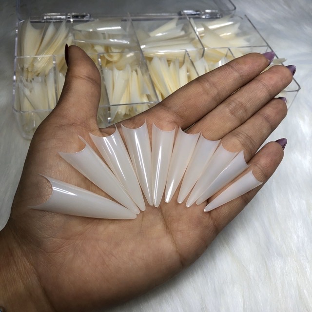 ✨✨Móng nối Form Nhọn DÀI nha các chị em. Móng không có khấc ở đầu nối và 2 bên cạnh ôm khít vào móng nên dán rất chắc , k bị kênh , đường smile thẳng chứ k khoét sâu nên gắn rất dễ k bị lift ạ 🥰🥰 Fom dài nên có thể bấm đầu là thành mong thang, bấm ngắn thì thành móng vuông luôn, bấm ngắn dũa tròn cũng rất oke luôn đó ạ. ----------------------------------- 0982204768